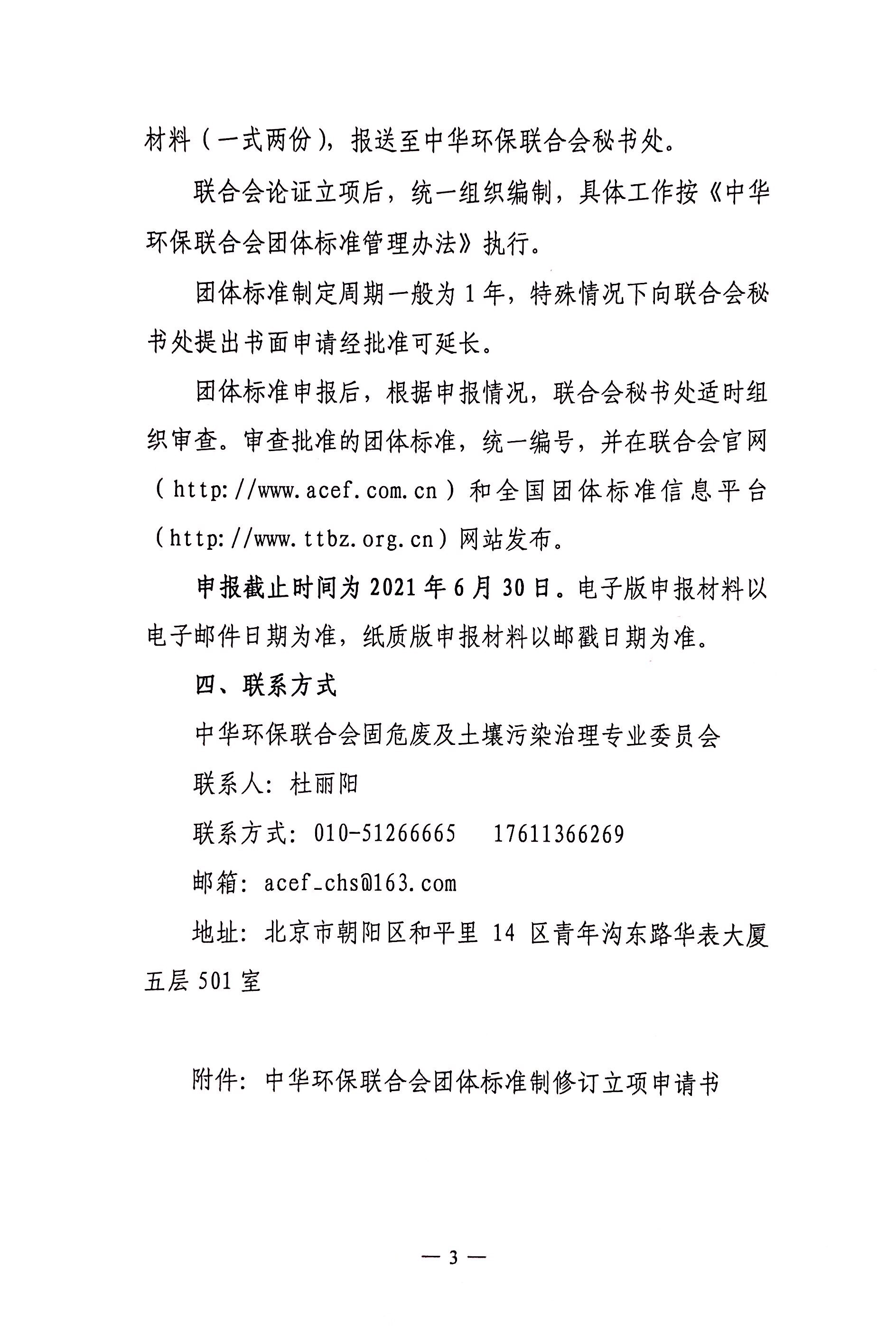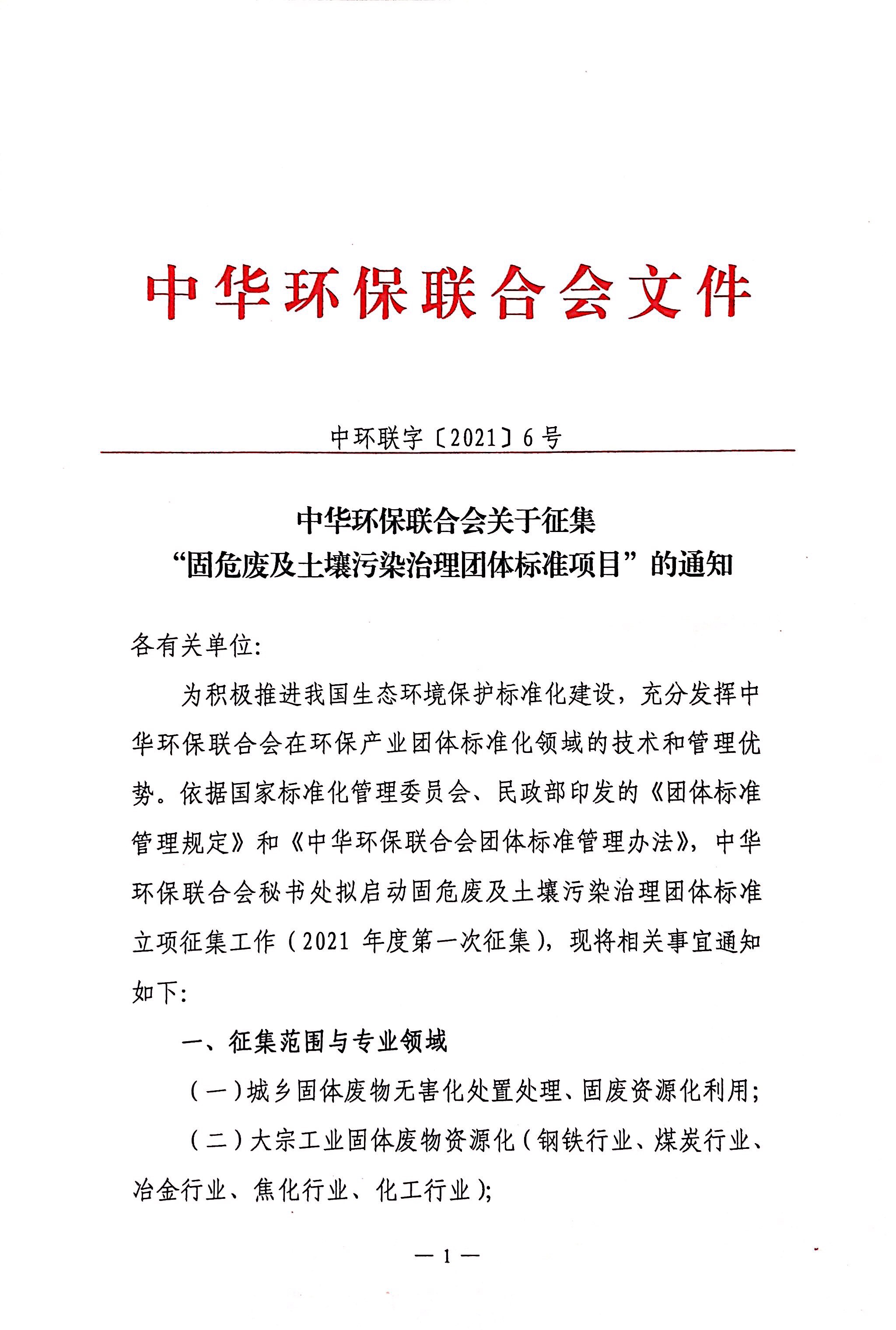 关于征集 “固危废及土壤污染治理团体标准项目”的通知