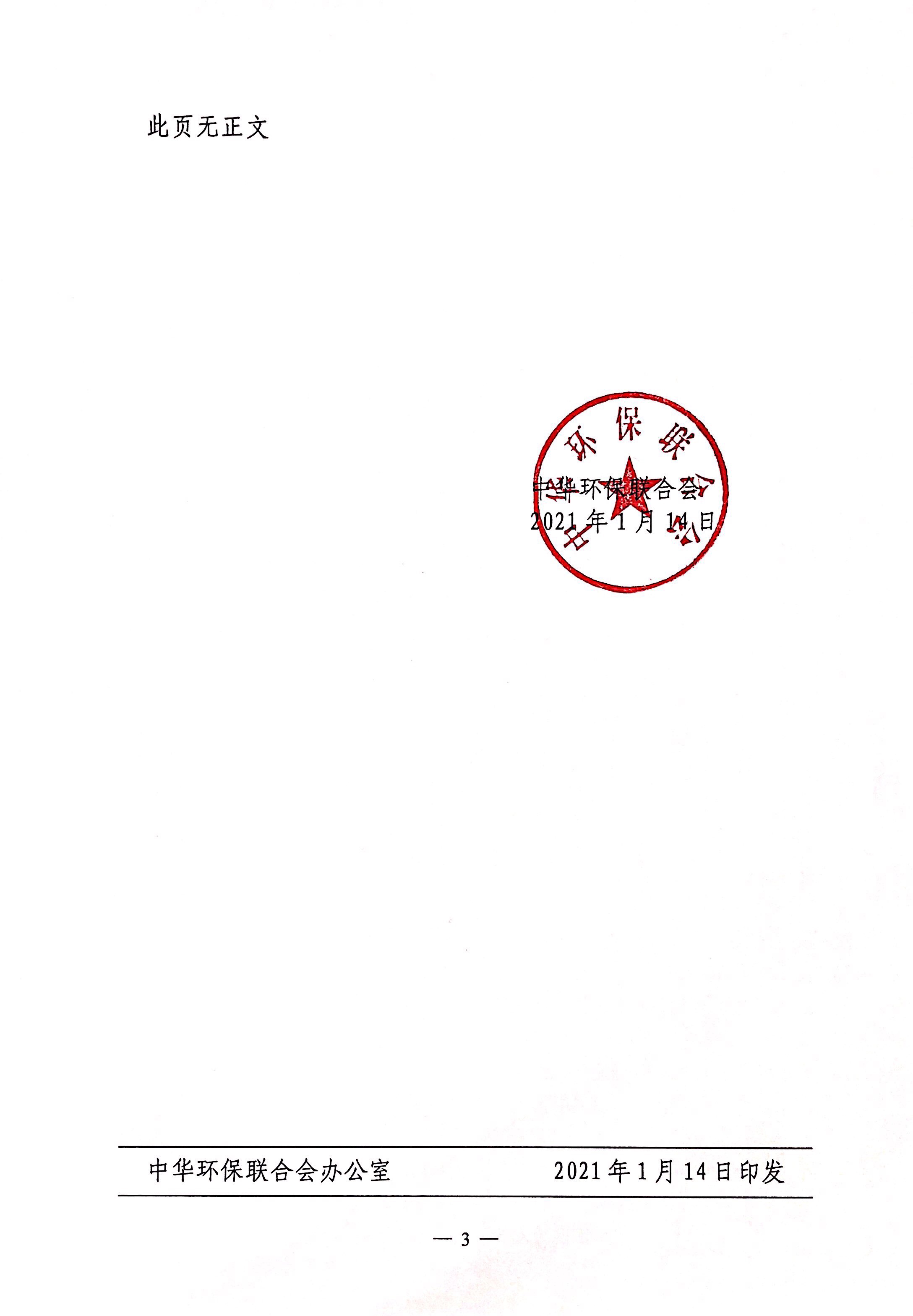 关于公布2020年度中华环保联合会