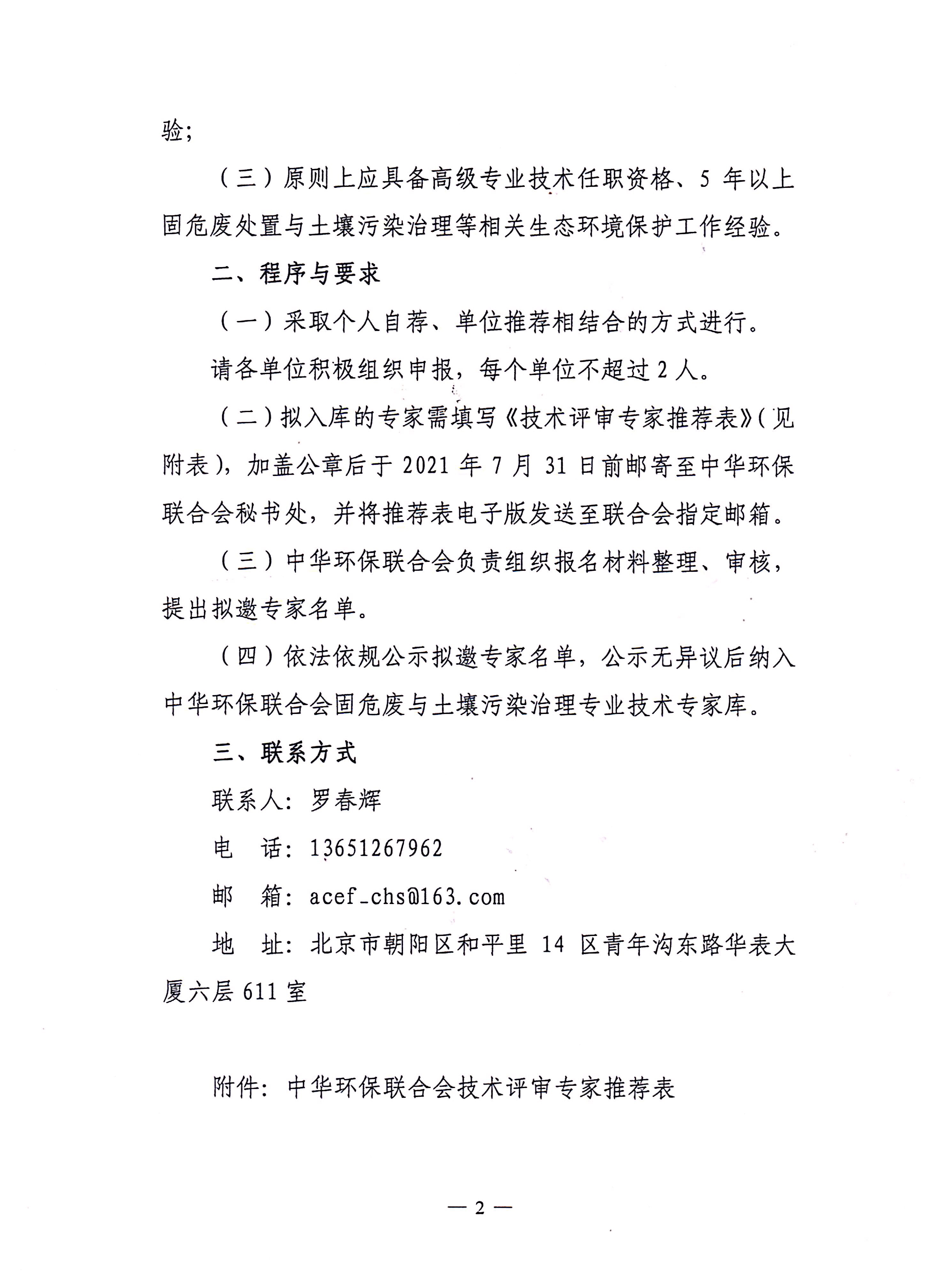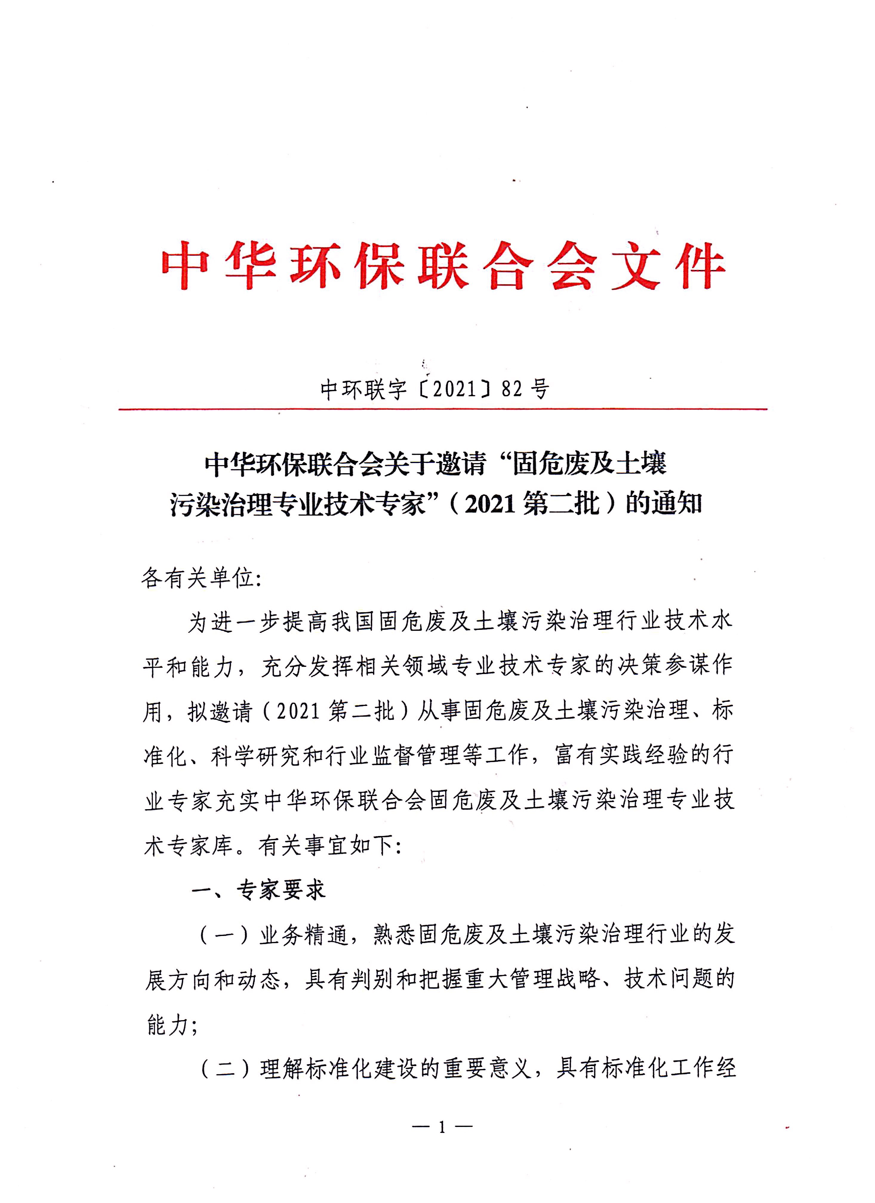 关于邀请“固危废及土壤污染治理专业技术专家”(2021第二批)的通知