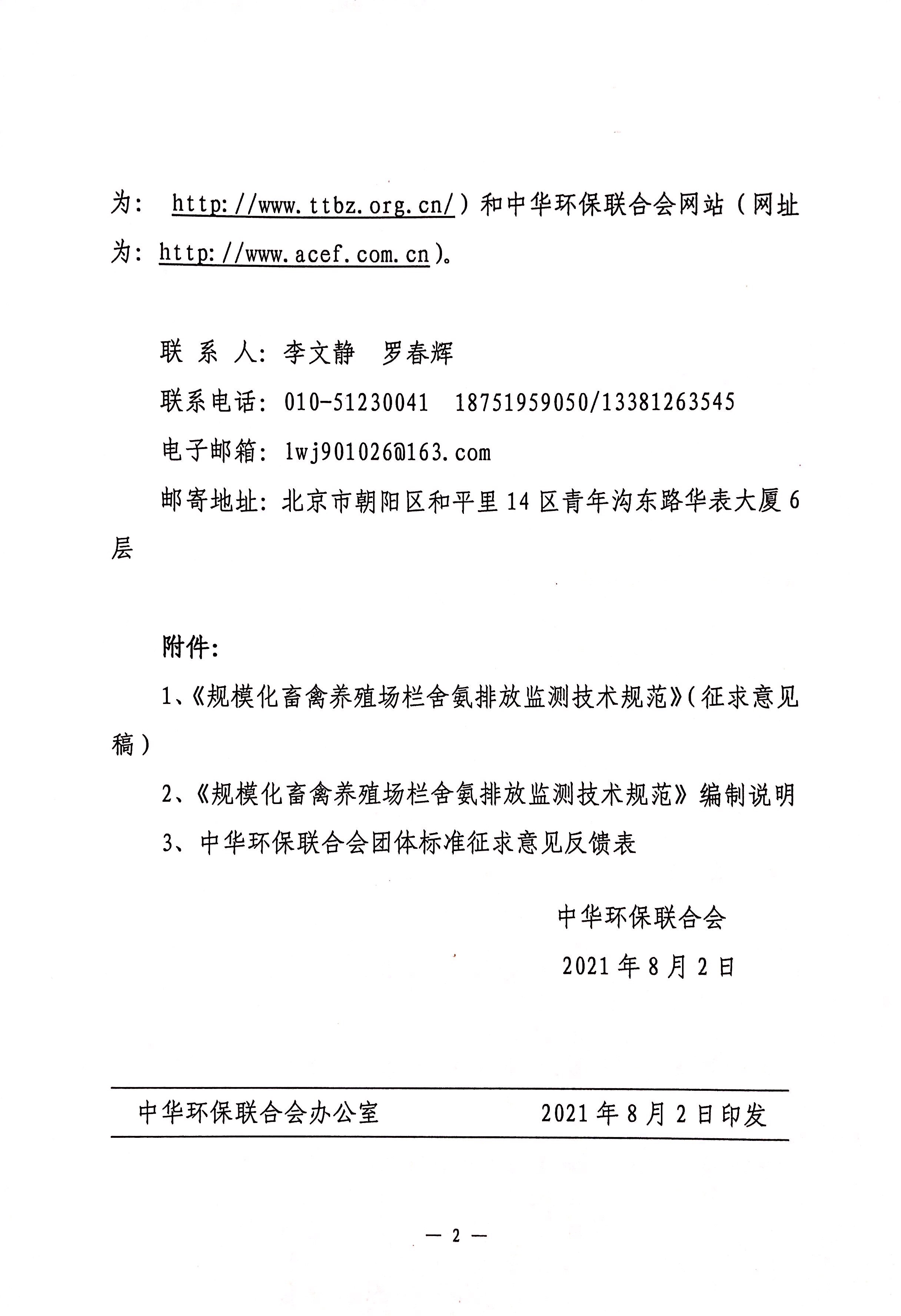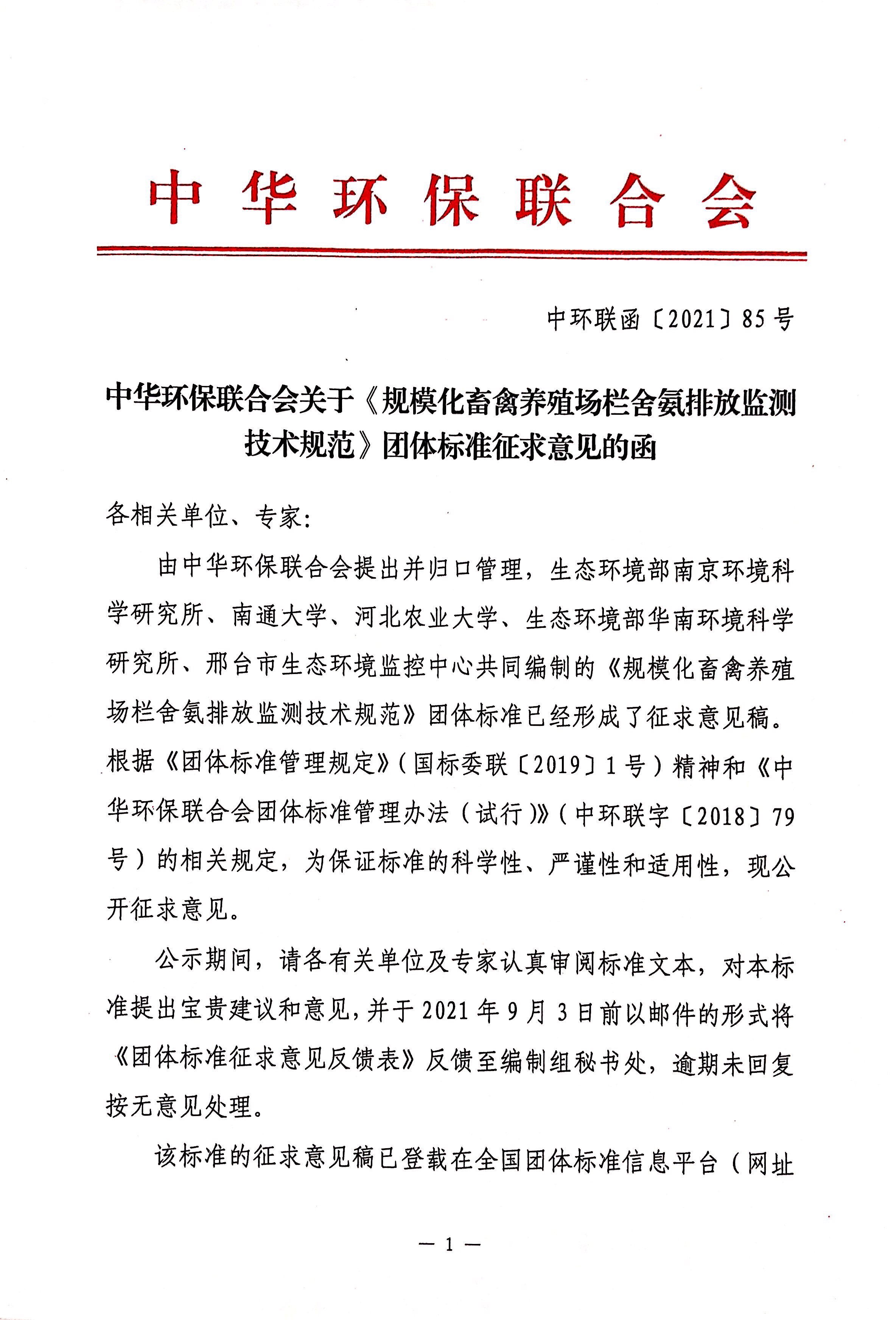 关于《规模化蓄禽养殖场栏舍氨排放监测技术规范》团体标准征求意见的函