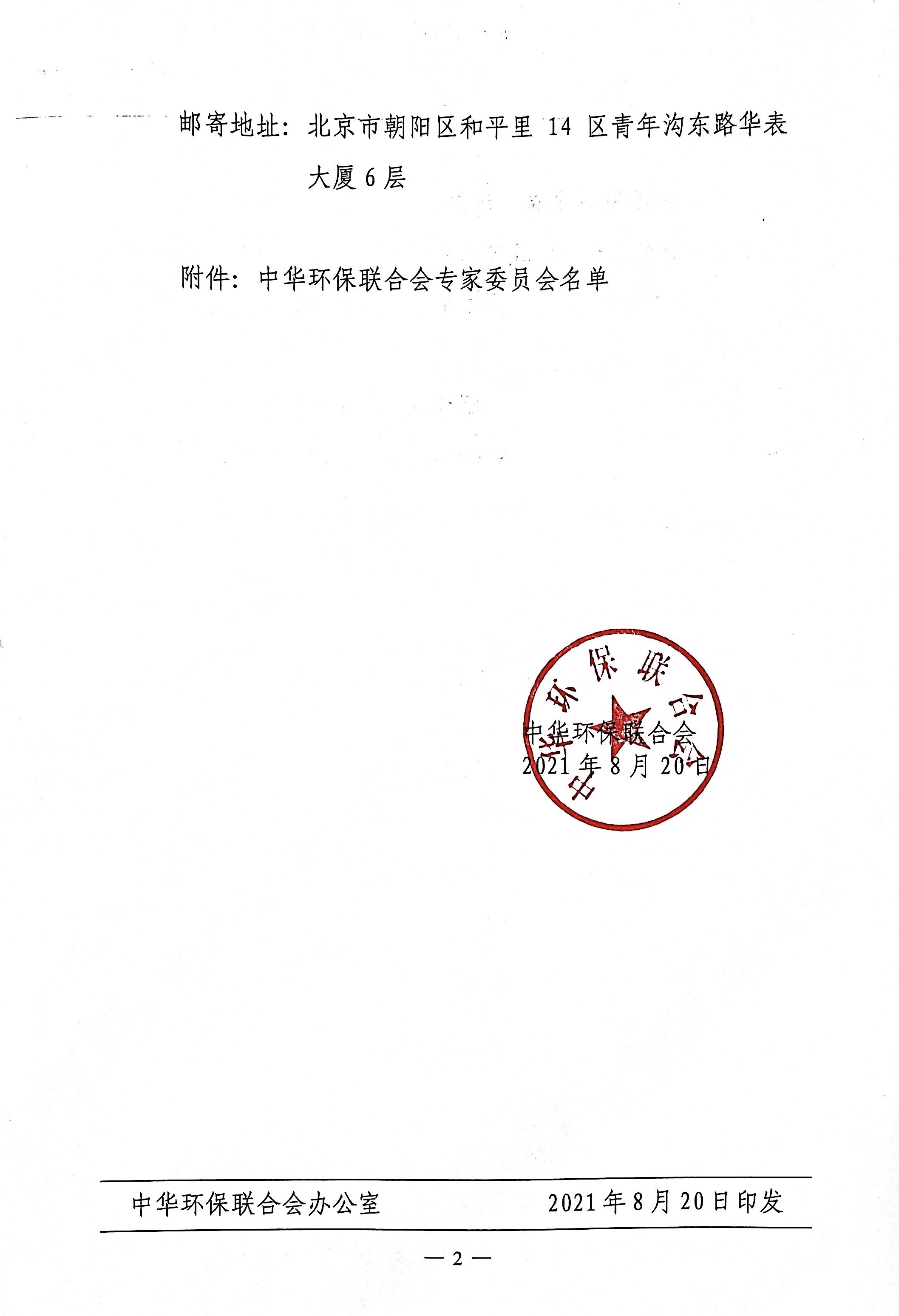 关于公布2020年度中华环保联合会