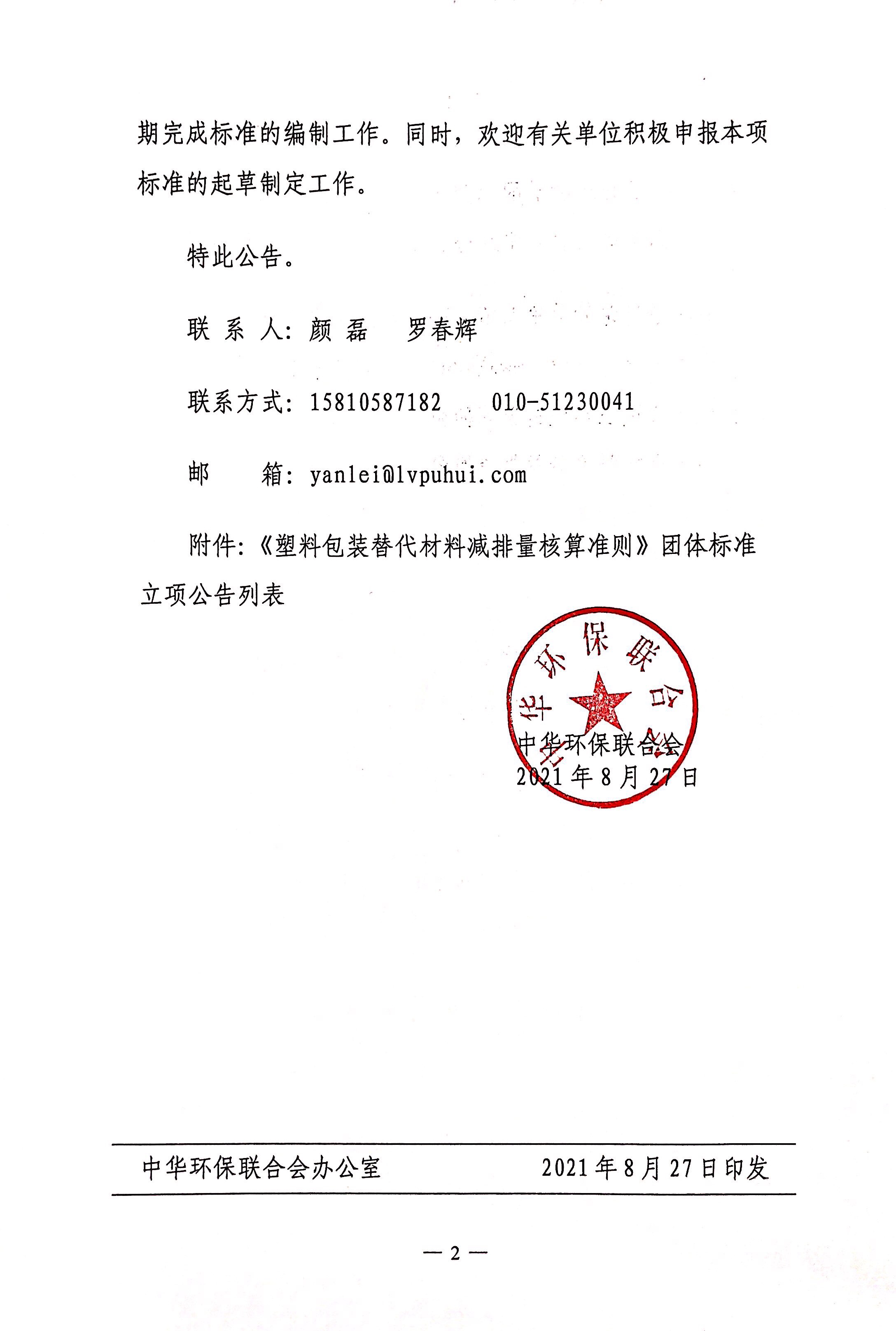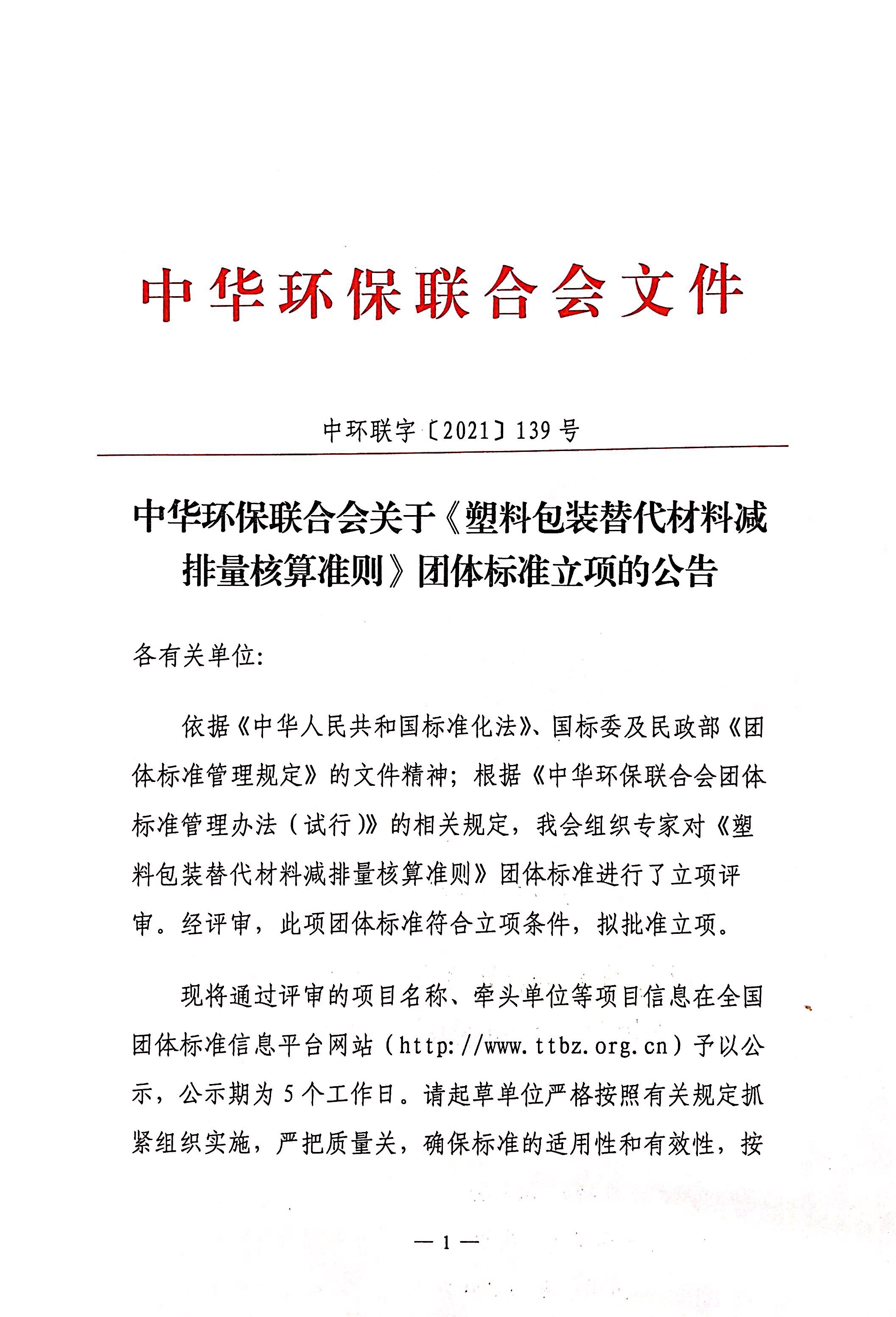 关于《塑料包装替代材料减排量核算准则》团体标准立项的公告