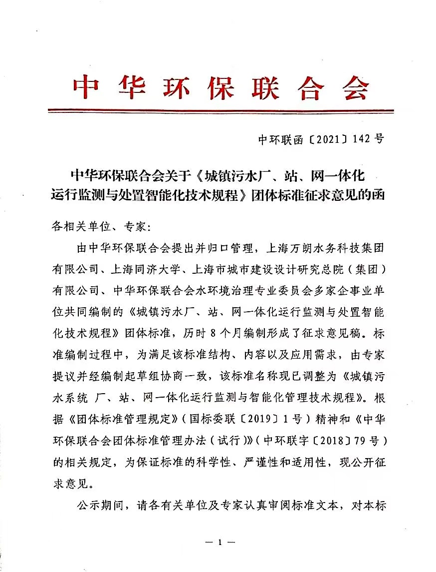 《城镇污水系统 厂、站、网一体化 运行监测与智能化管理技术规程(征求意见稿)》 |