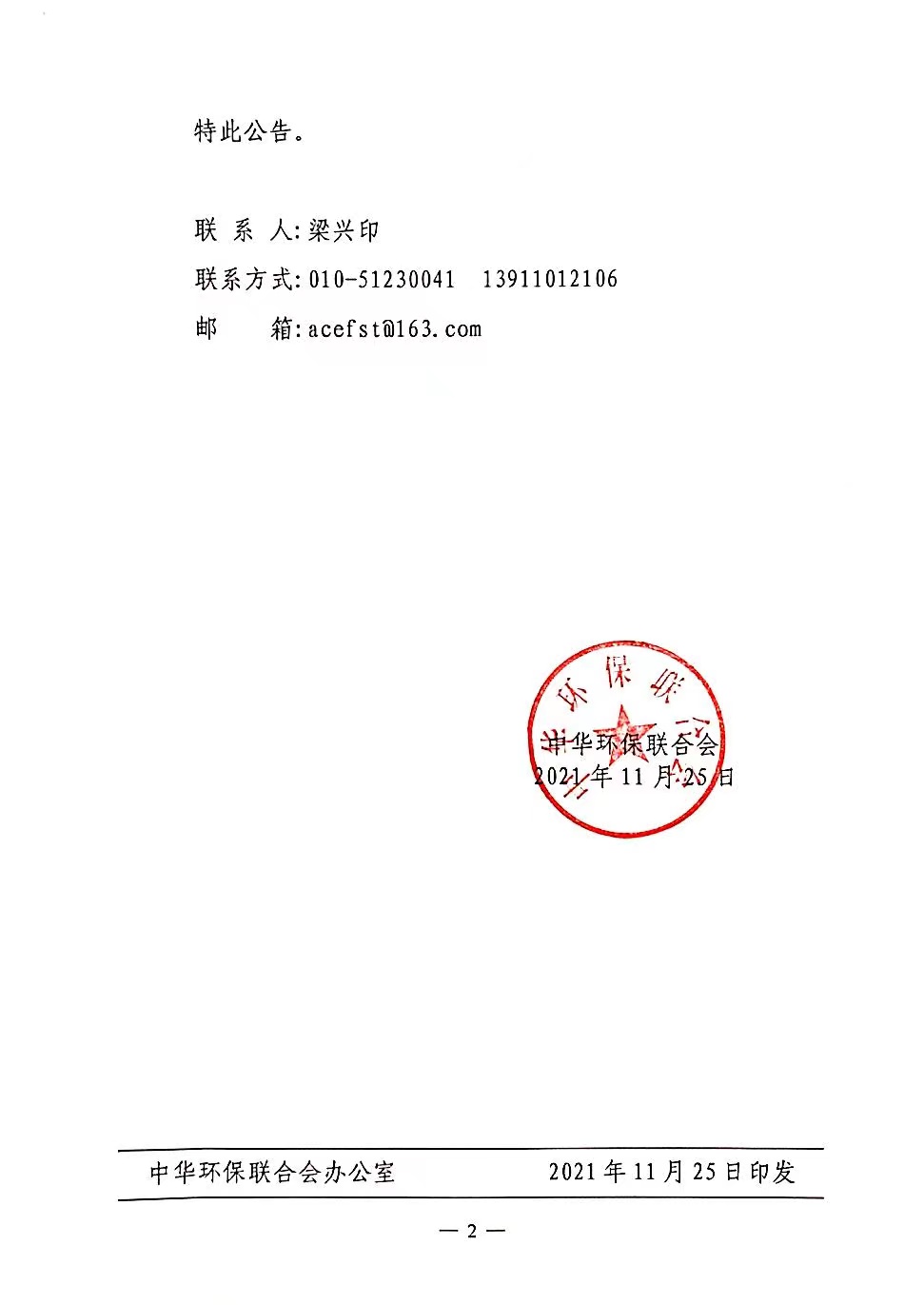 中华环保联合会关于公示2023年度