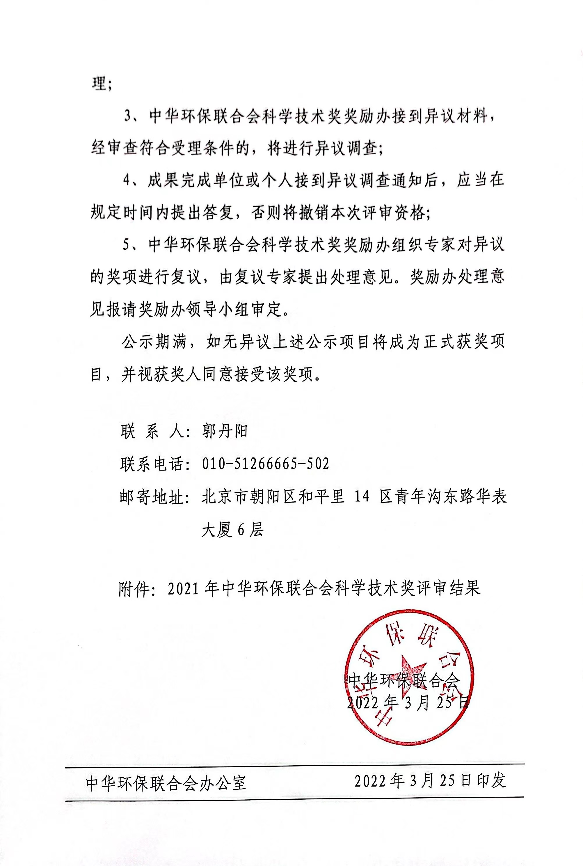 关于开展 2021年度中华环保联合会