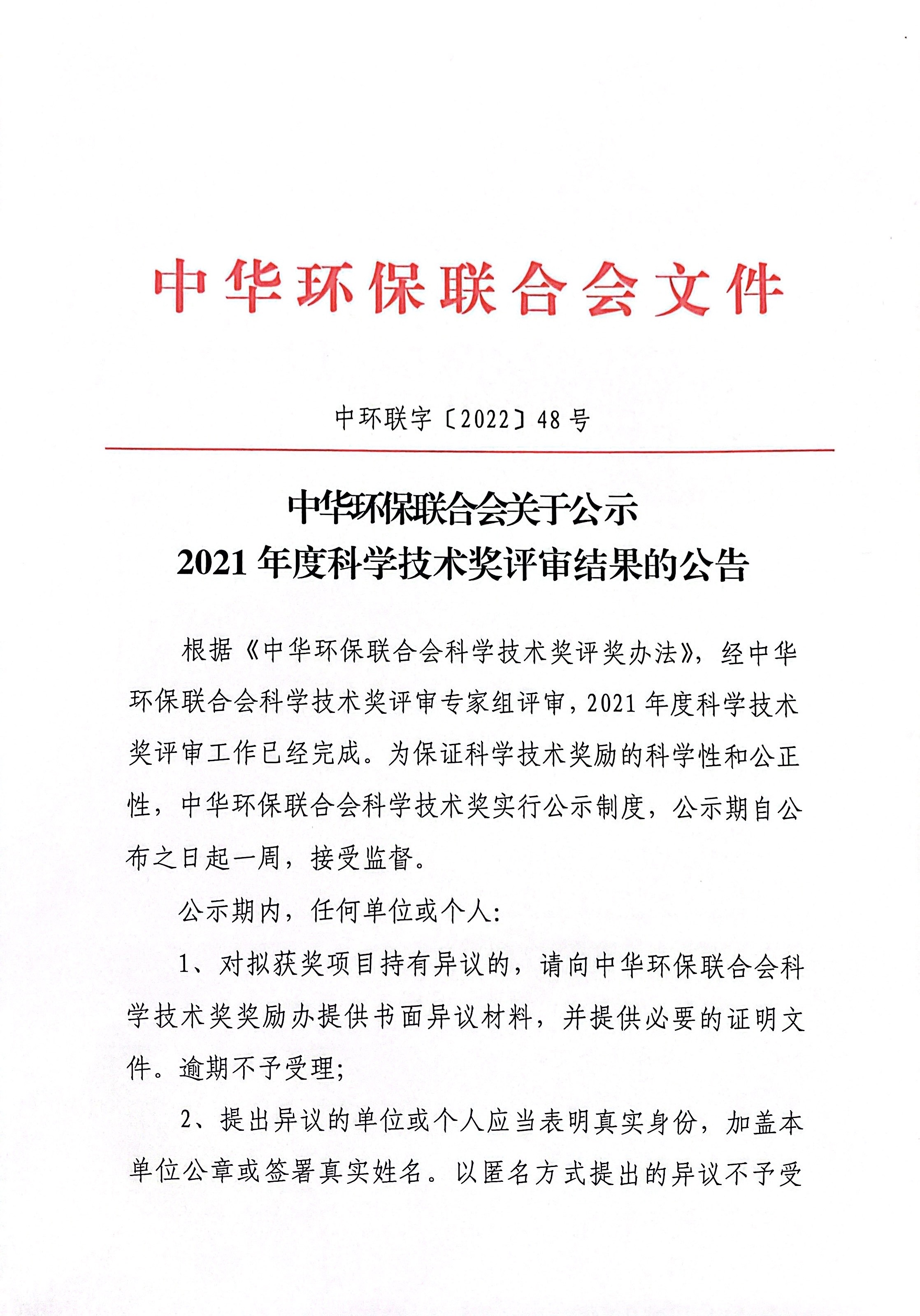 关于发布《中华环保联合会科学技