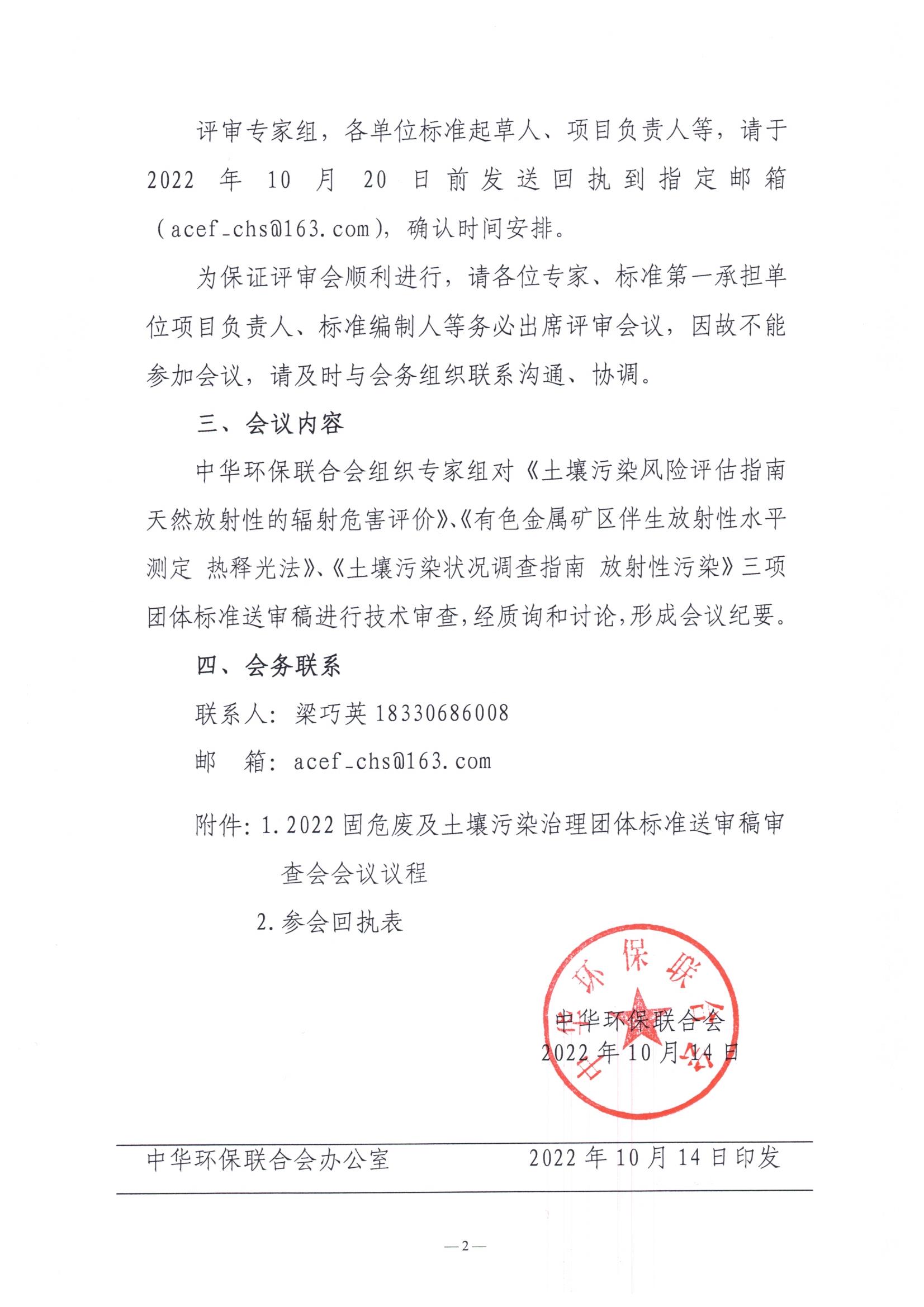 中华环保联合会关于召开2022固危废及土壤污染治理团体标准送审稿审查会的通知