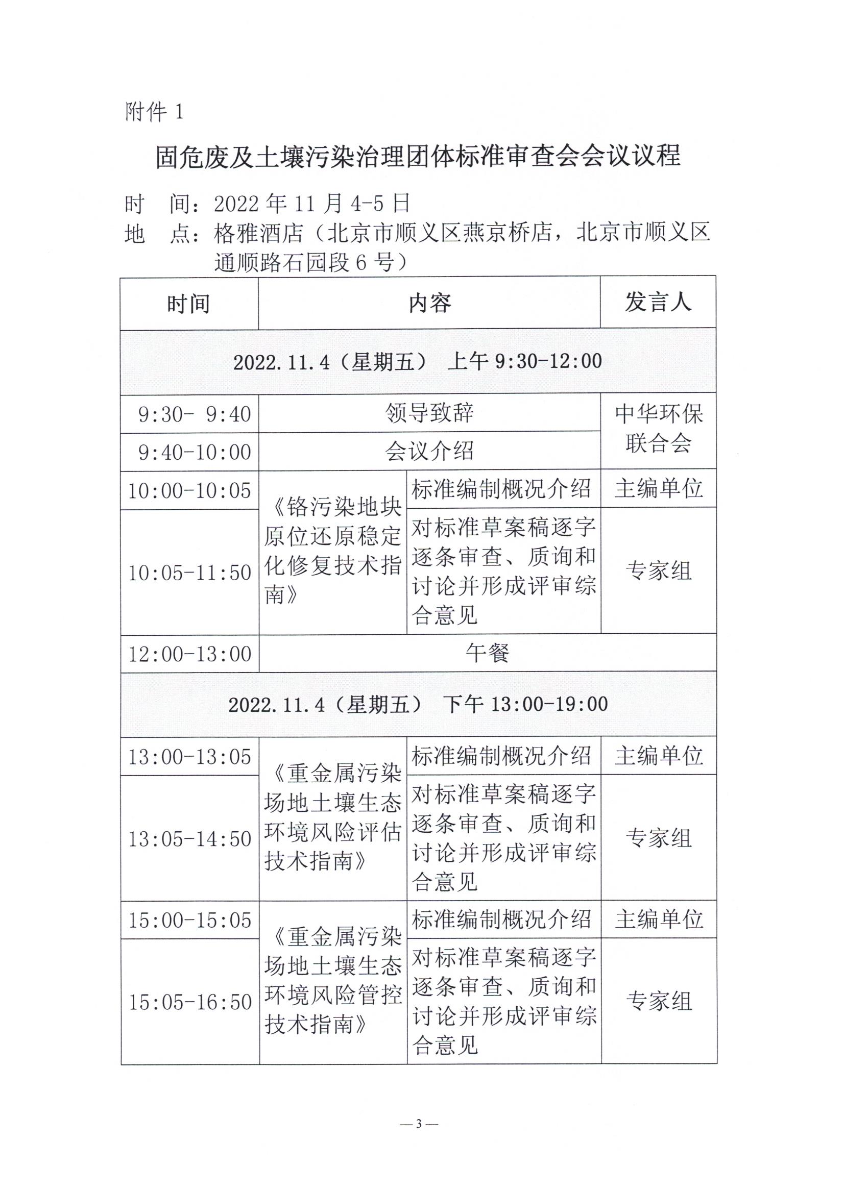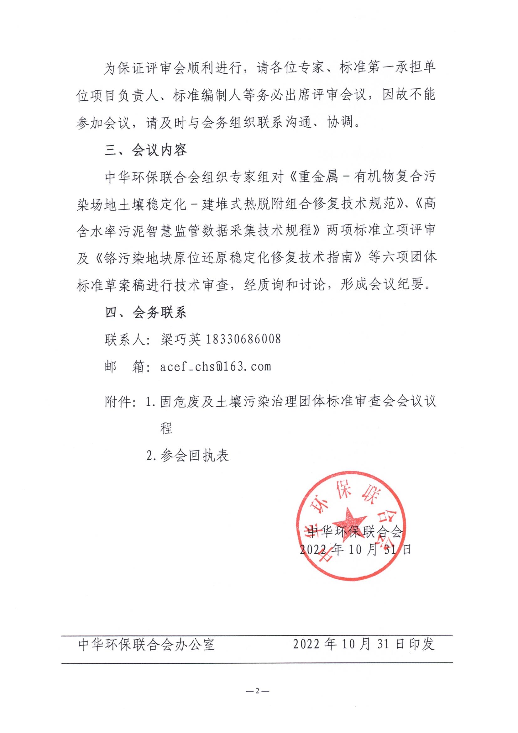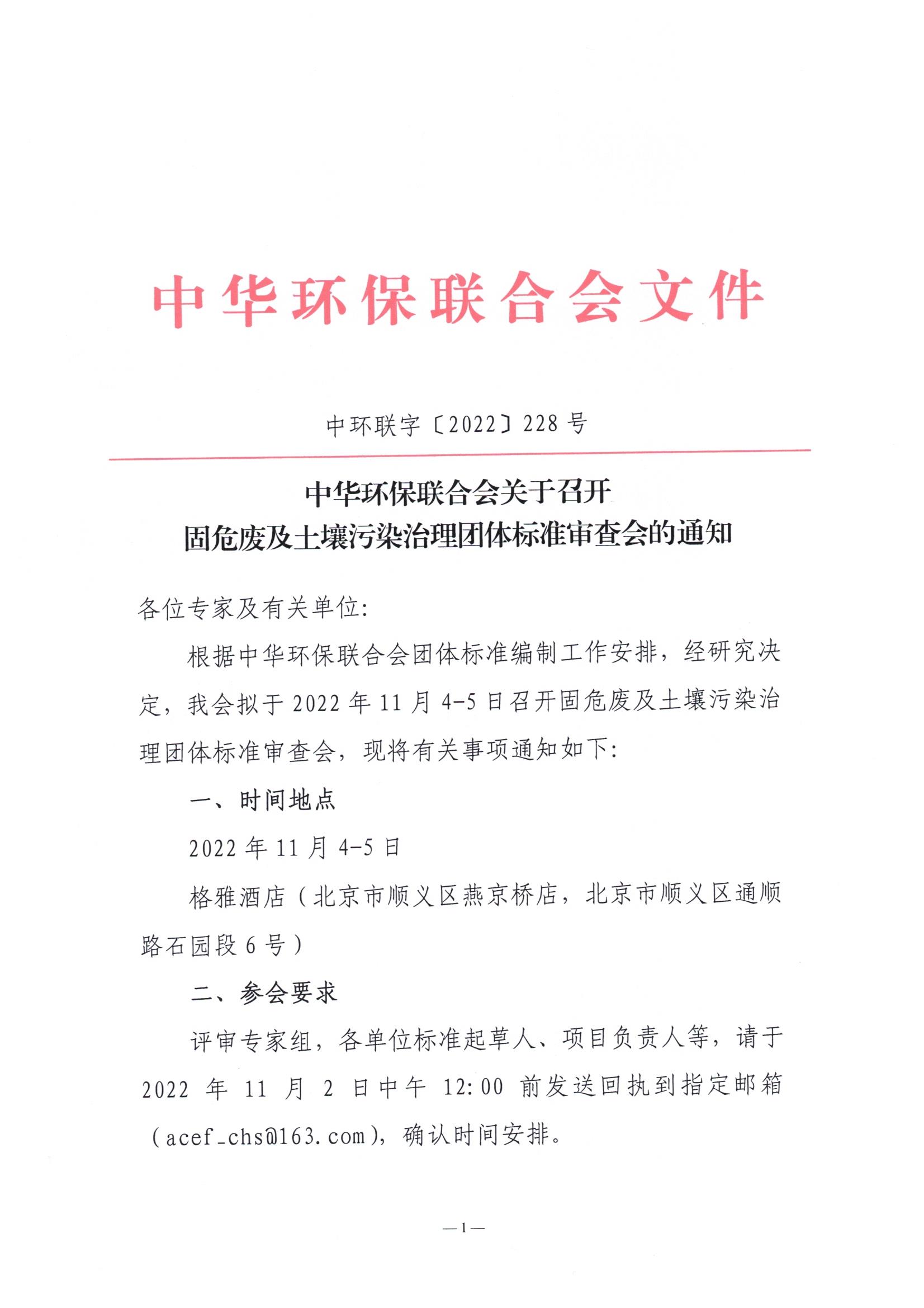 中华环保联合会关于召开固危废 及土壤污染治理团体标准审查会的通知