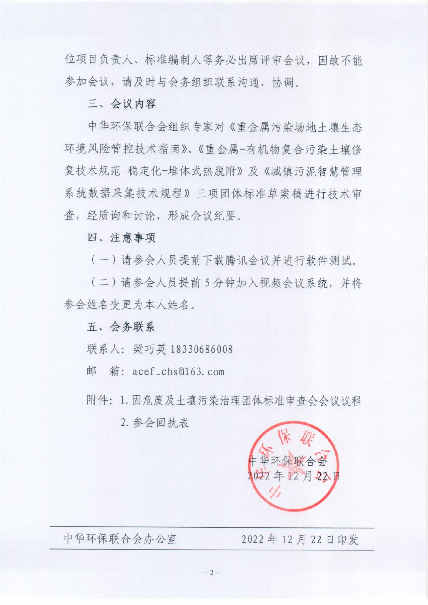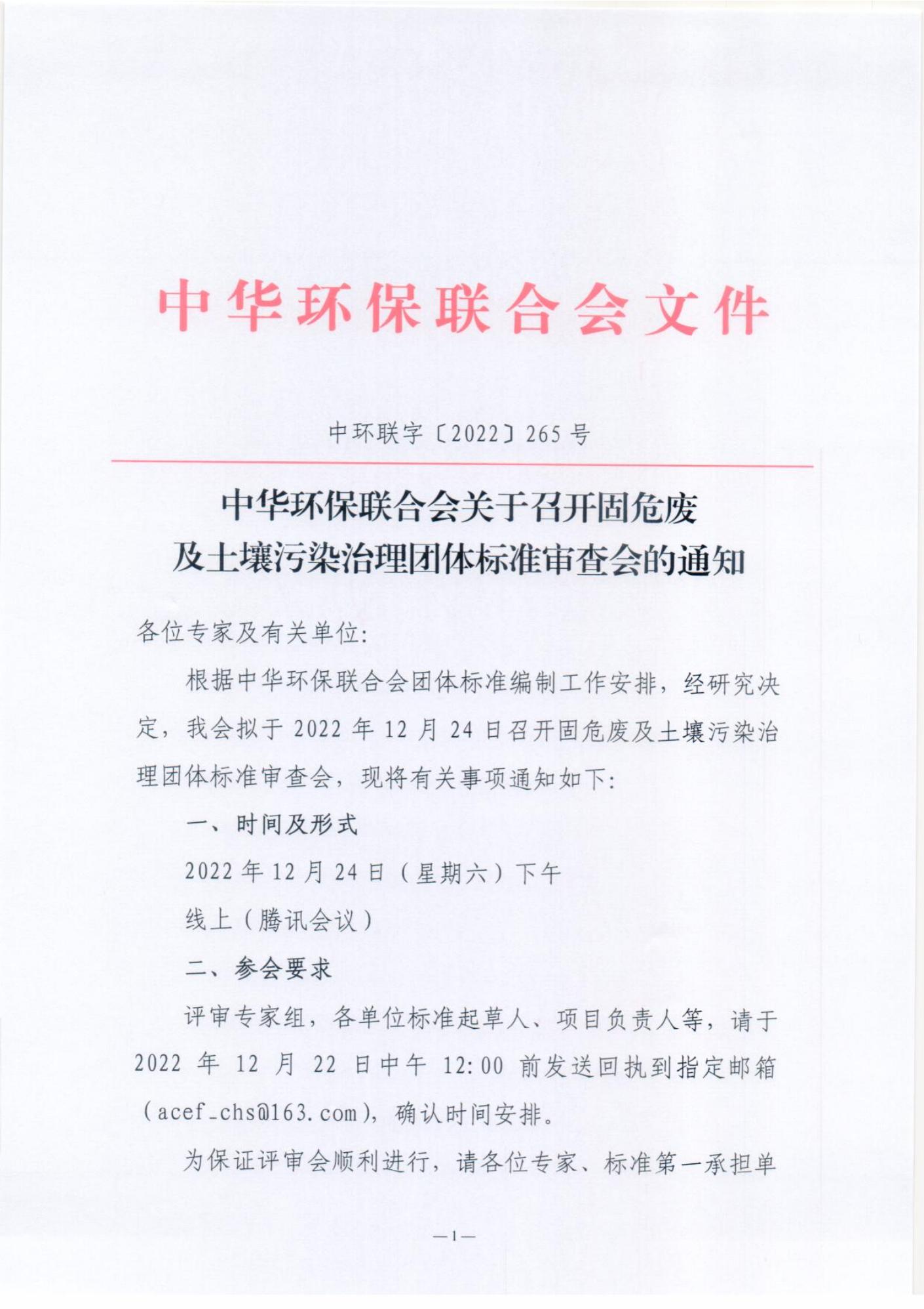 关于召开固危废及土壤污染治理团体标准审查会的通知