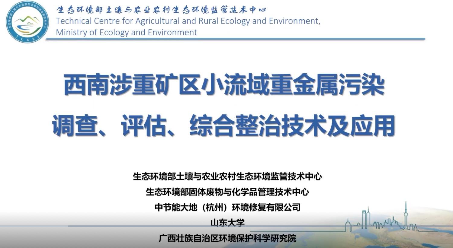 第一个评价项目是生态环境部土壤与农业农村生态环境监管技术中心、生态环境部固体废物与化学品管理技术中心、中节能大地(杭州)环境修复有限公司、山东大学和广西壮族自治区环境保护科学研究院申请的“西南涉重矿区小流域重金属污染调查、评估、综合整治技术及应用”科研成果,由项目汇报人王玉向专家组进行了详细的汇报并回答了相关问题。