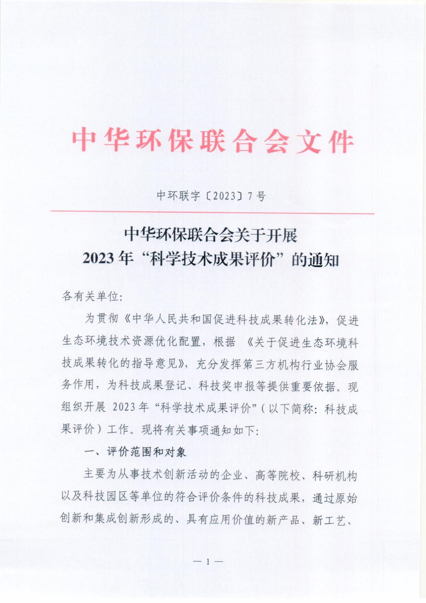 关于开展2023年“科学技术成果评价”的通知