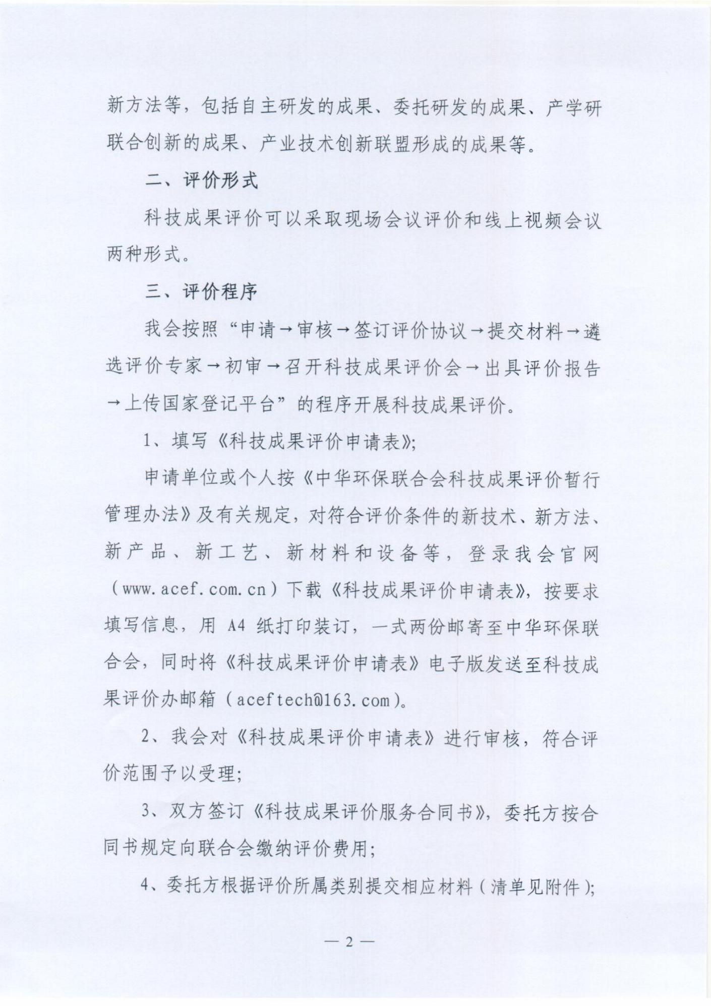 中华环保联合会科技成果评价