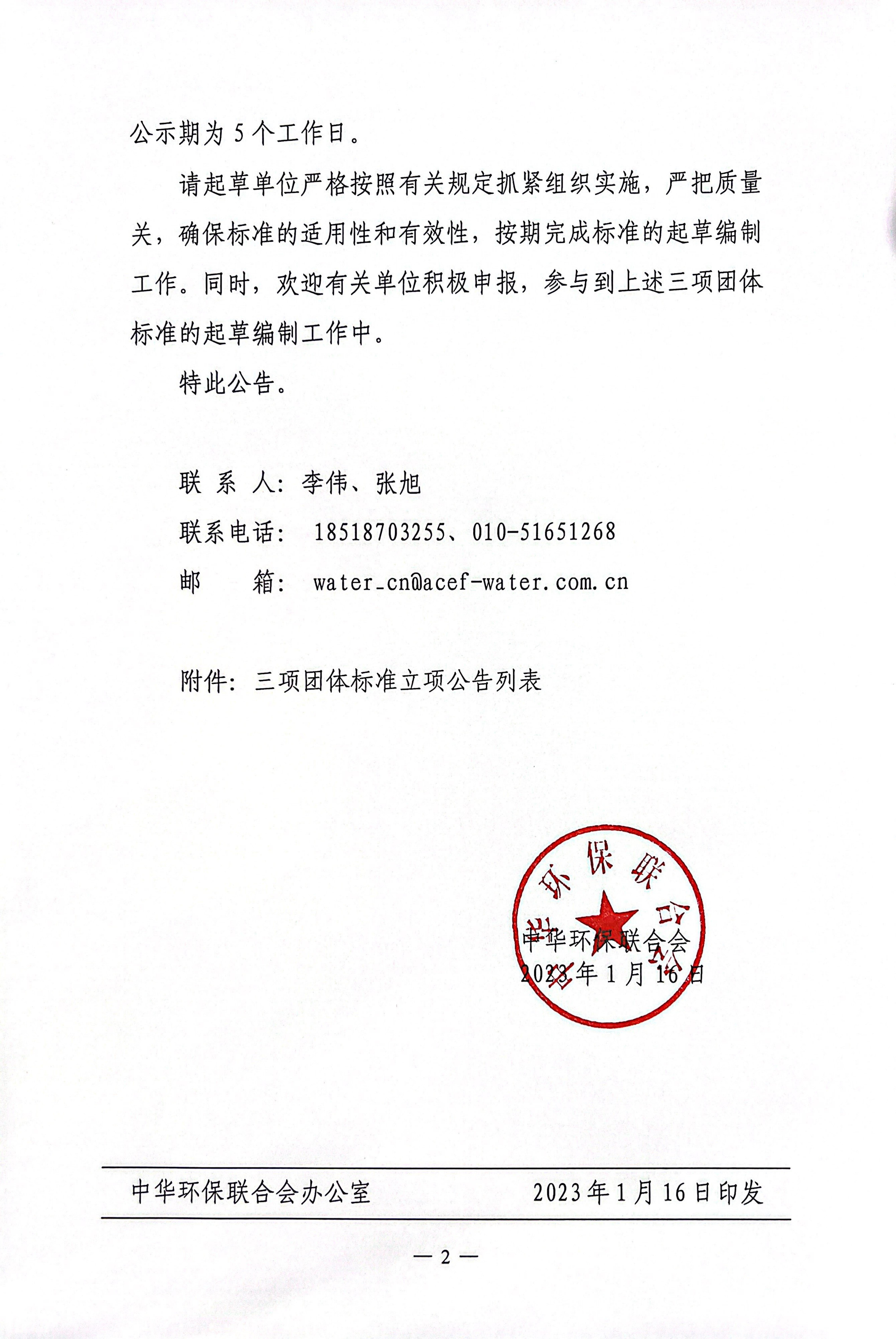 关于《污废水处理厂温室气体监测技术规程》等三项团体标准立项公告