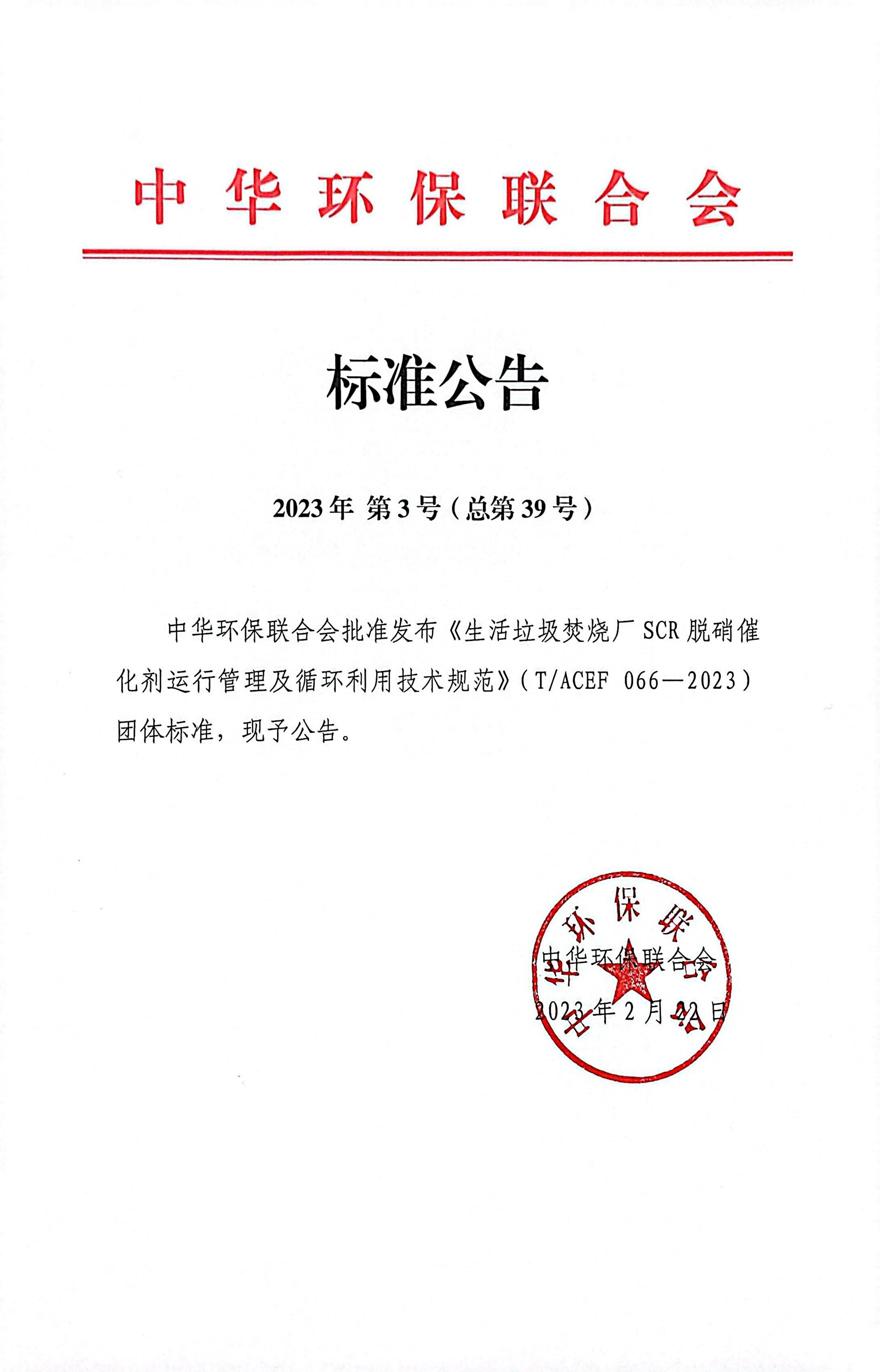 《生活垃圾焚烧厂SCR脱硝催化剂运行管理及循环利用技术规范》(T/ACEF 066—2023):http://www.ttbz.org.cn/StandardManage/Detail/77651