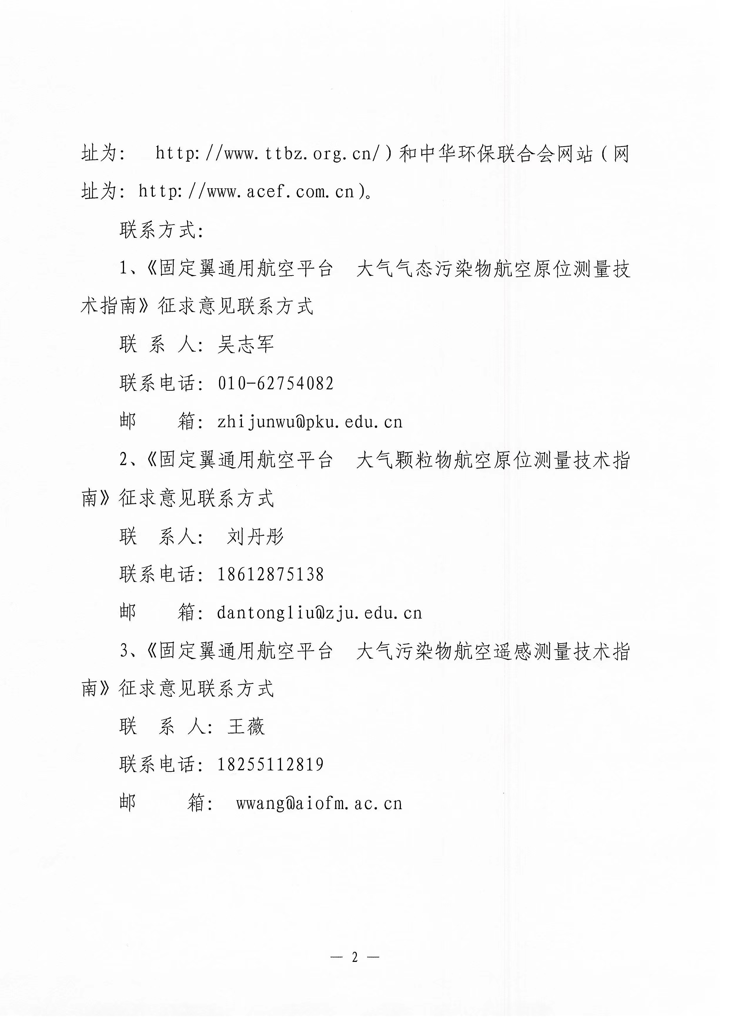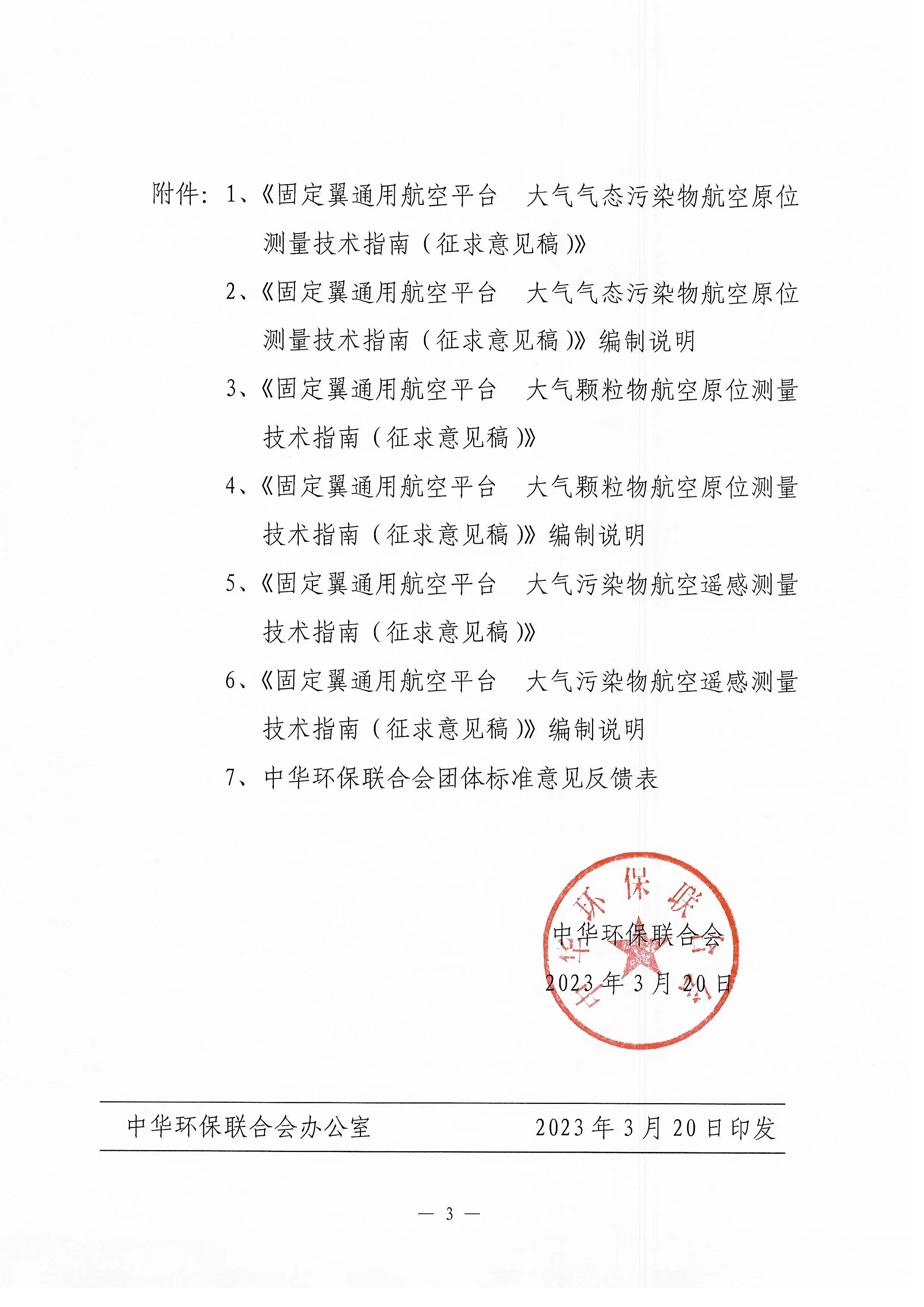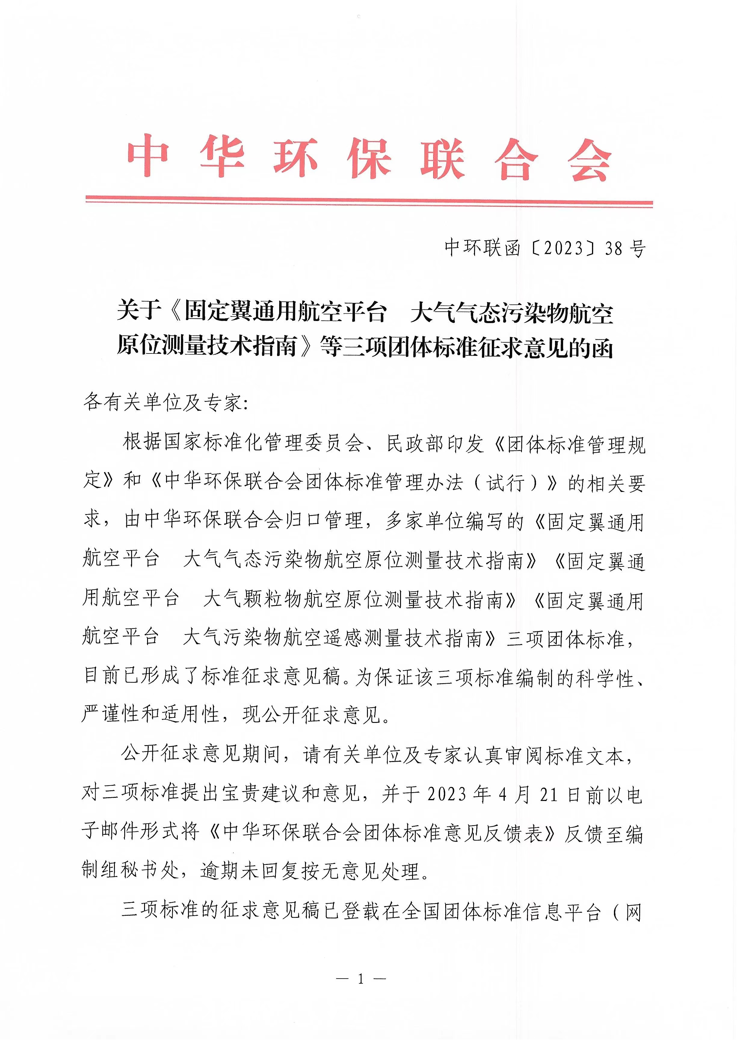 关于《固定翼通用航空平台 大气气态污染物航空原位测量技术指南》等三项团体标准征求意见的函