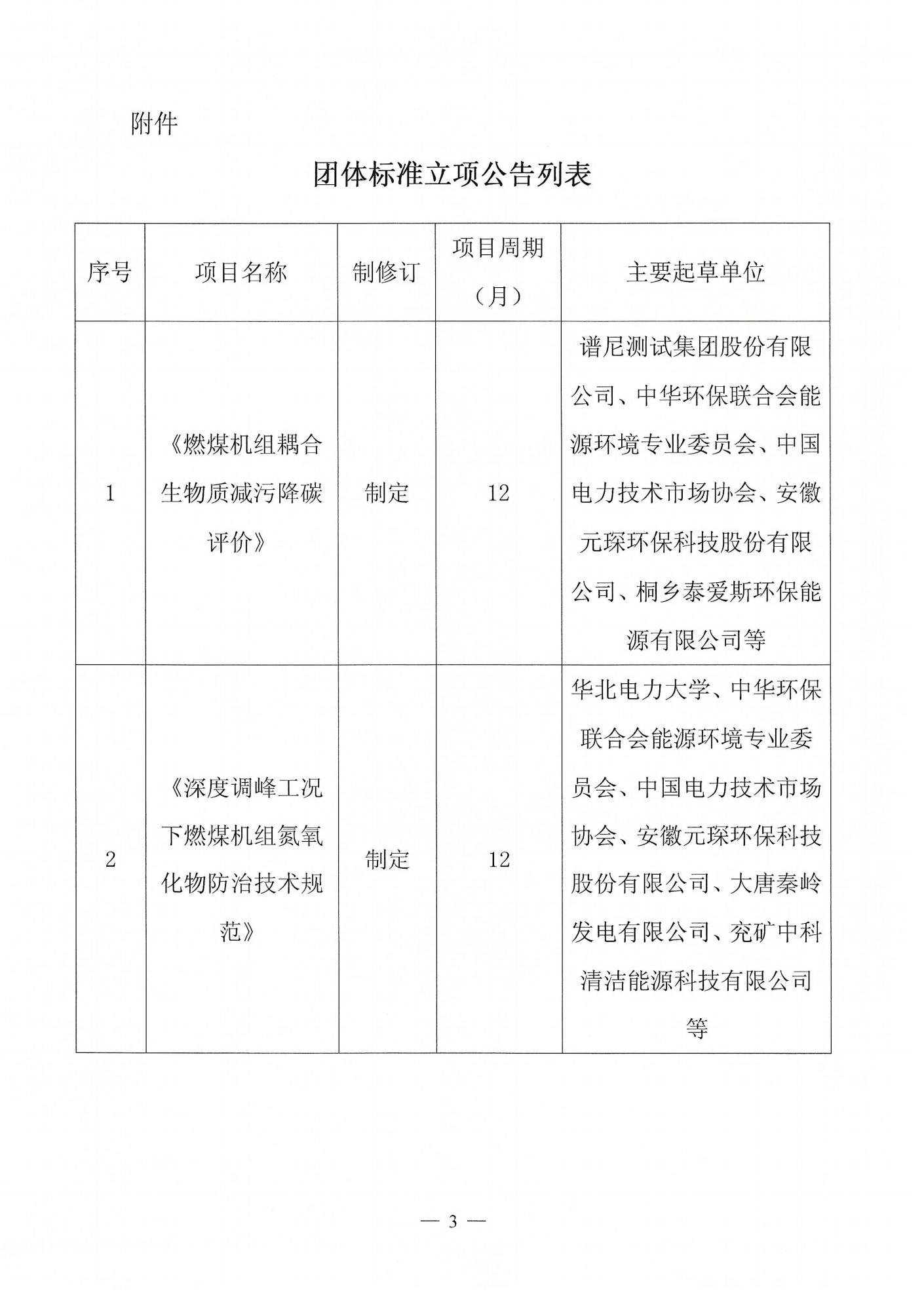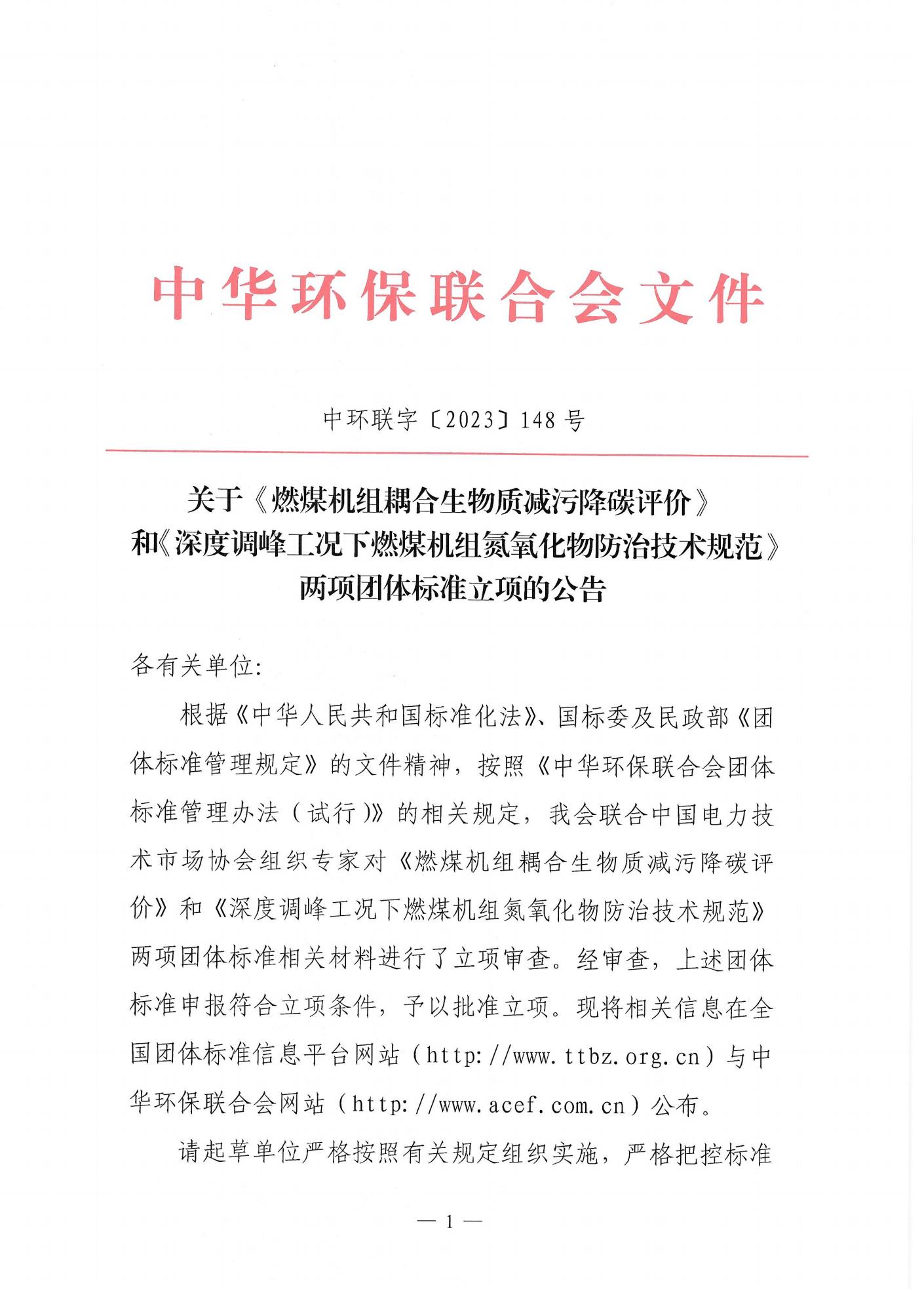 关于《燃煤机组耦合生物质减污降碳评价》和《深度调峰工况下燃煤机组氮氧化物防治技术规范》两项团体标准立项的公告