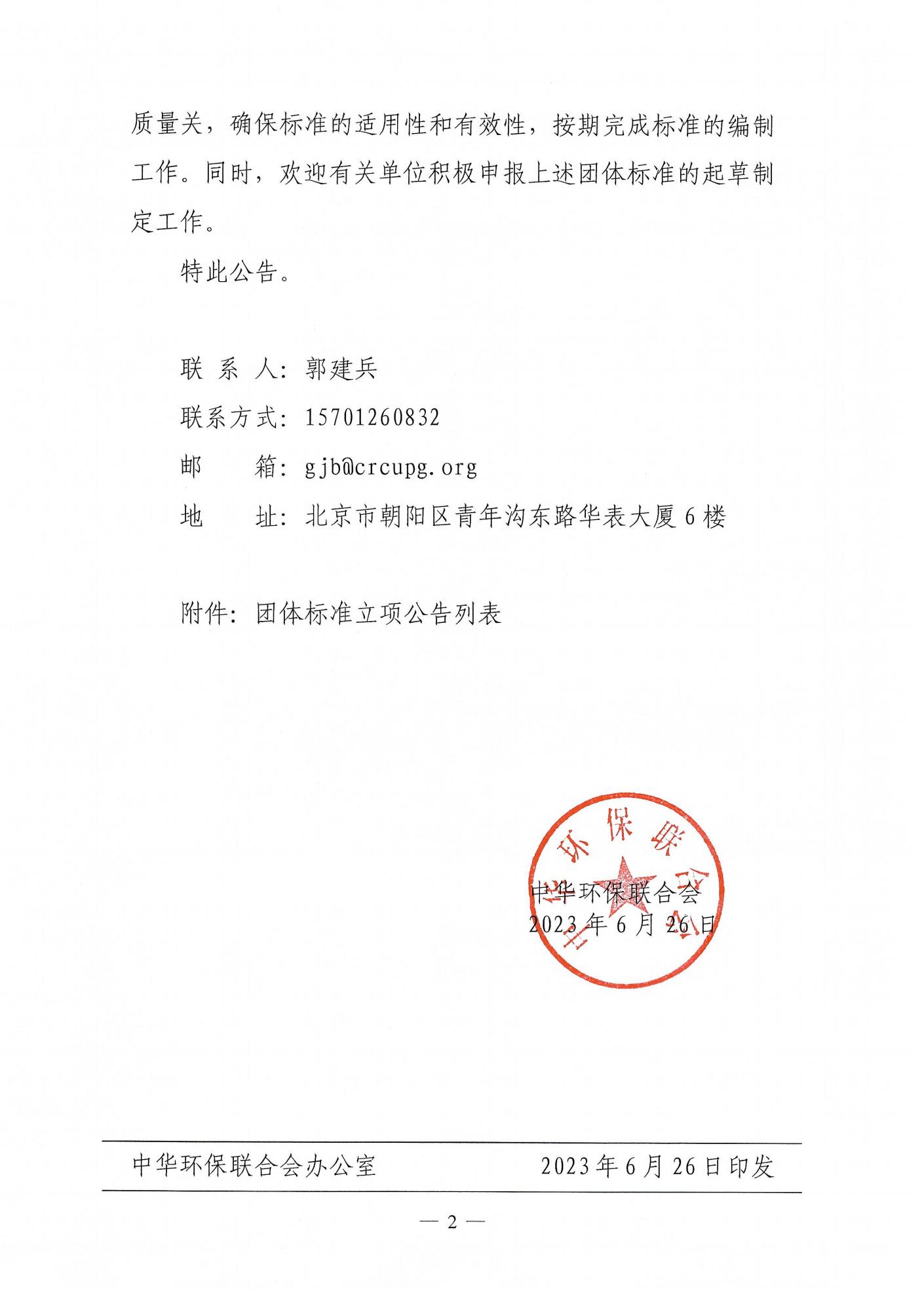 中华环保联合会关于公示2023年度