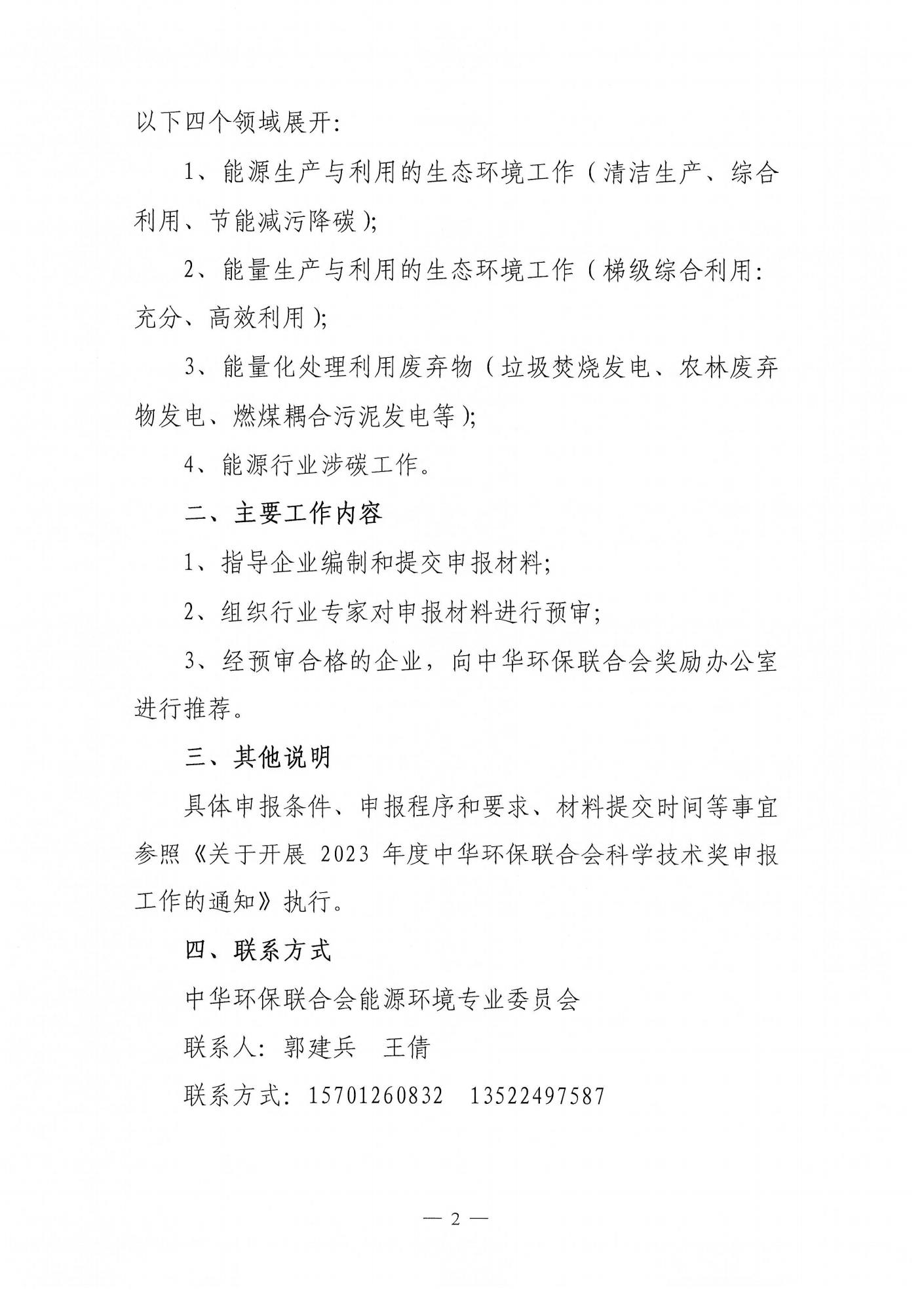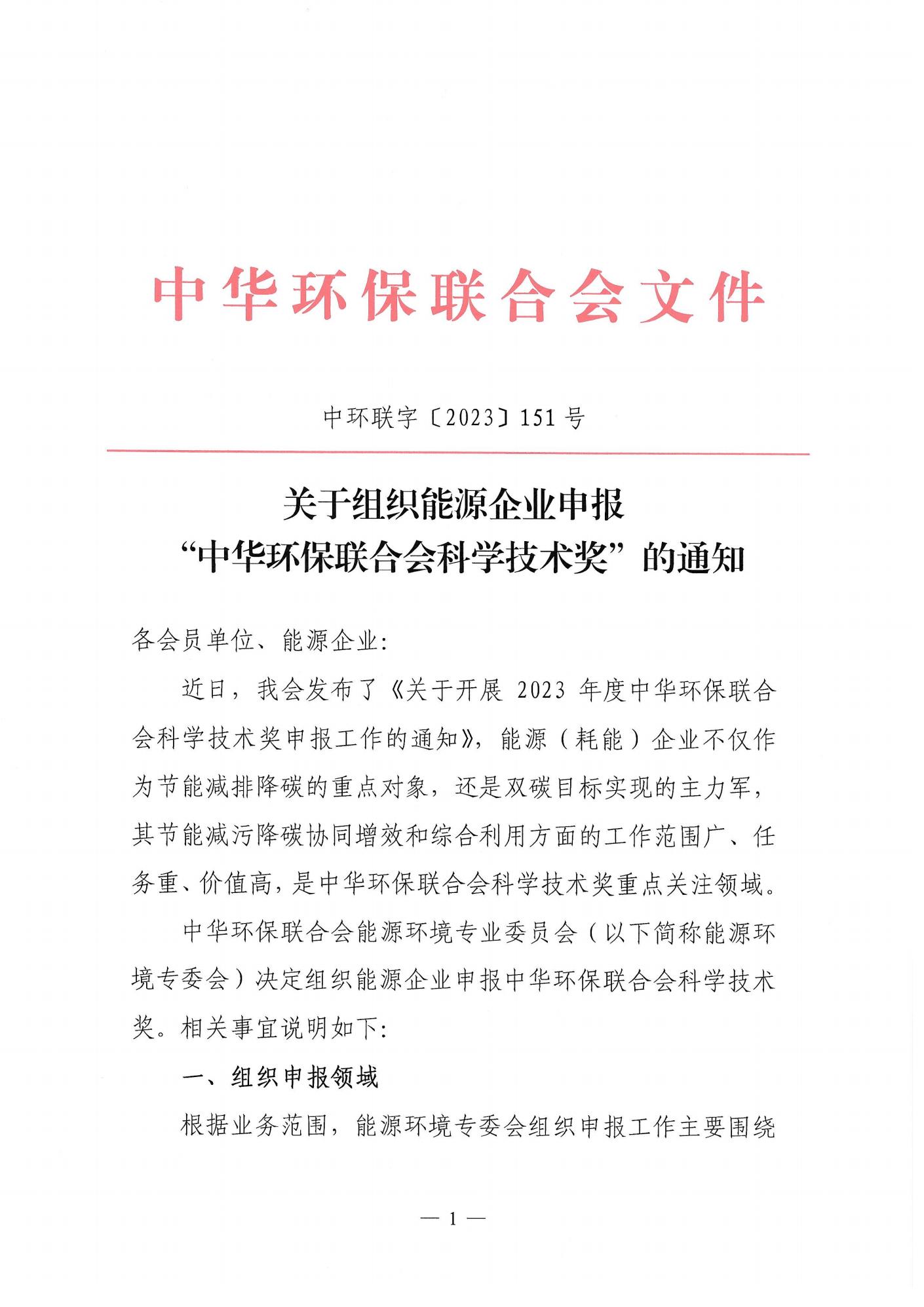 关于组织能源企业申报 “中华环保联合会科学技术奖”的通知