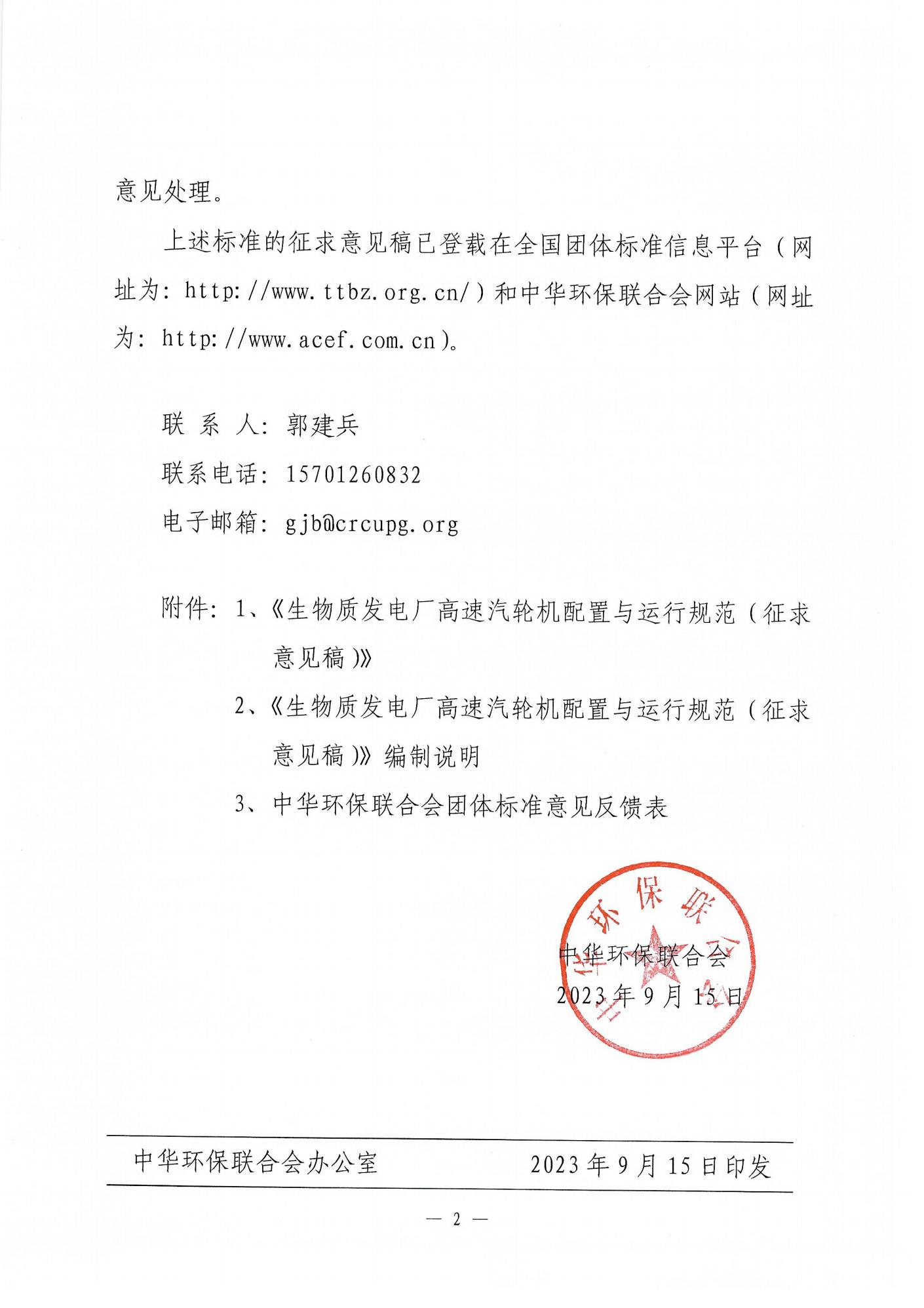 关于《生物质发电厂高速汽轮机配置与运行规范》团体标准征求意见的函