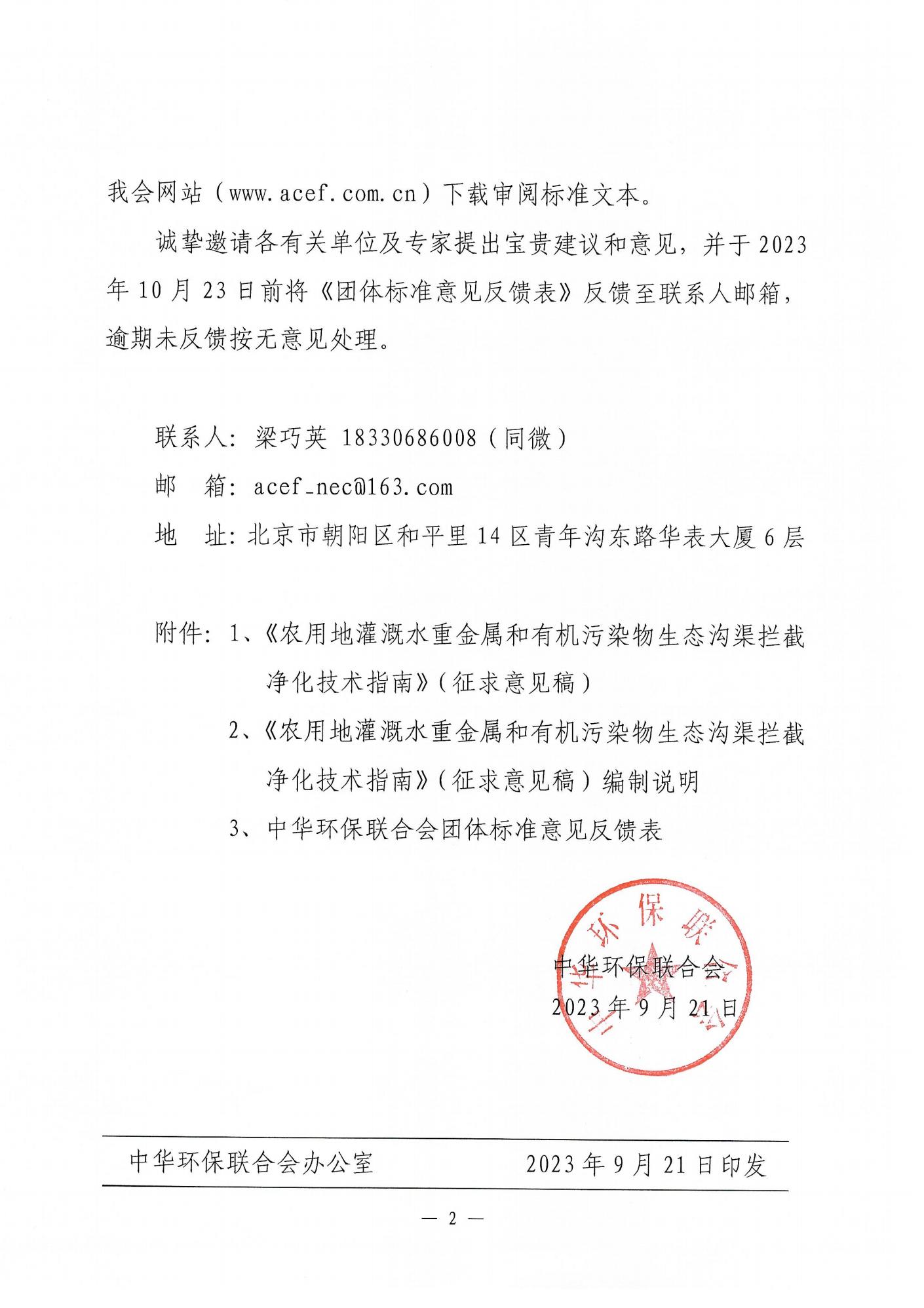 关于《农用地灌溉水重金属和有机污染物生态沟渠拦截净化技术指南》团体标准征求意见的函