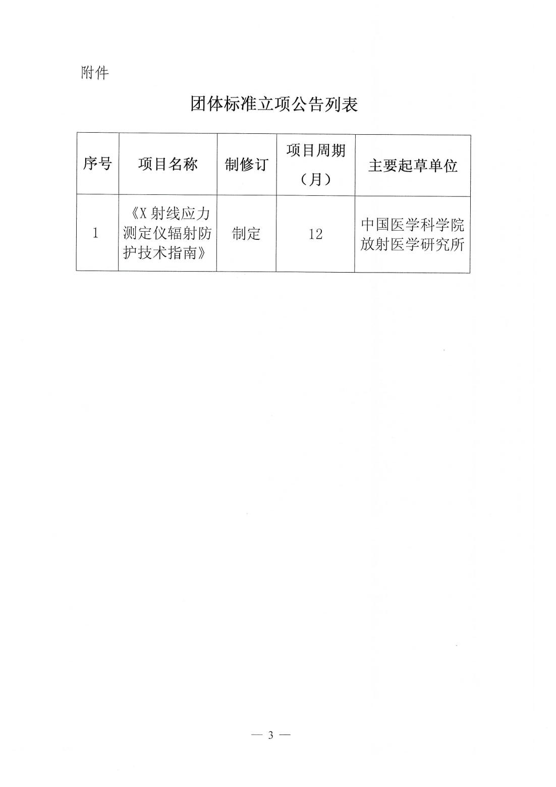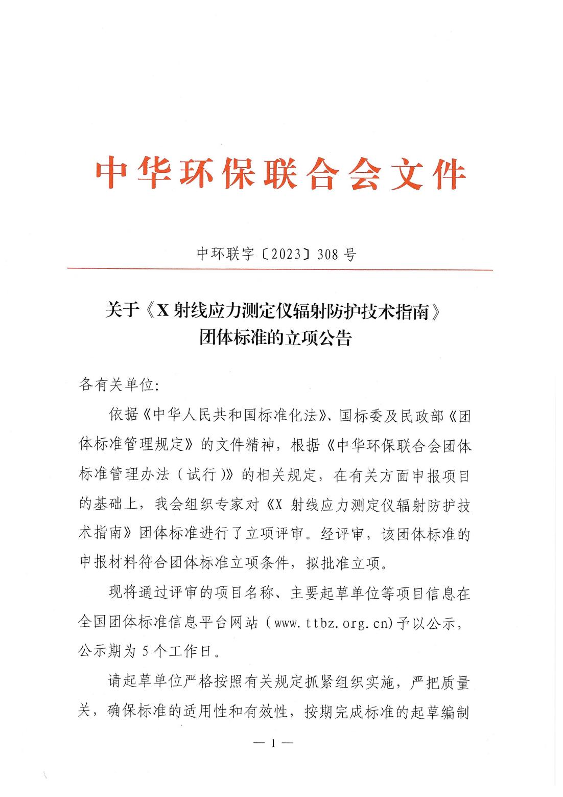 关于《X射线应力测定仪辐射防护技术指南》团体标准的立项公告