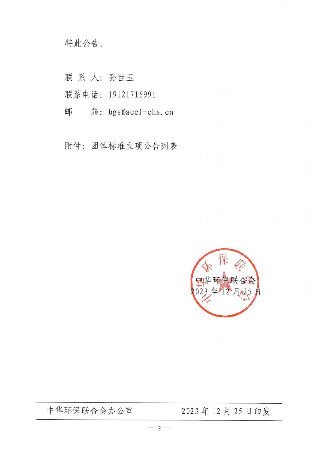 中华环保联合会关于公示2023年度