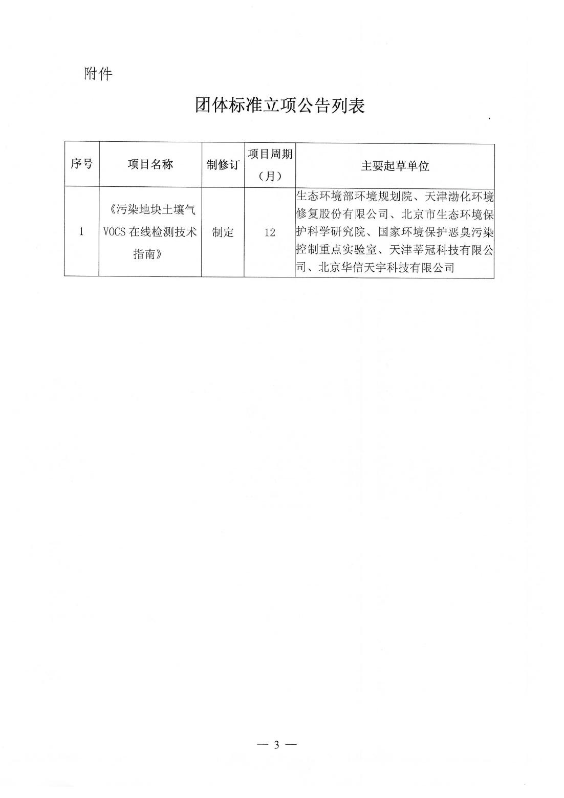 关于《污染地块土壤气VOCS在线检测技术指南》团体标准立项的公告