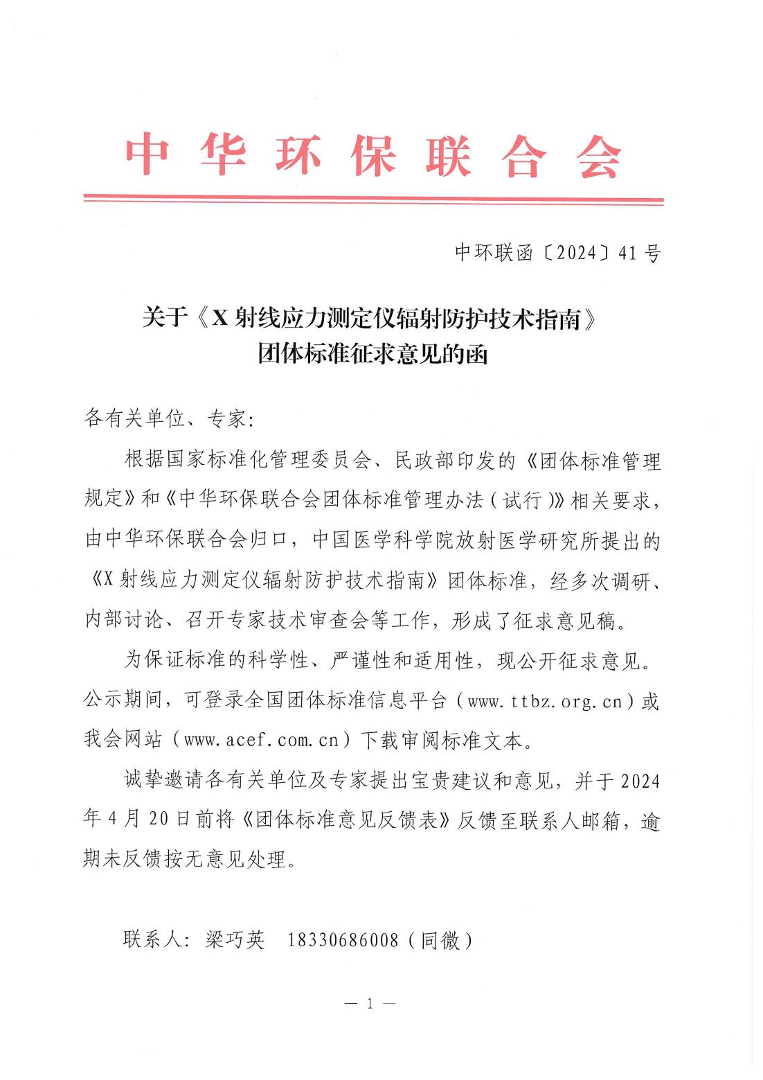 关于《X射线应力测定仪辐射防护技术指南》团体标准征求意见的函