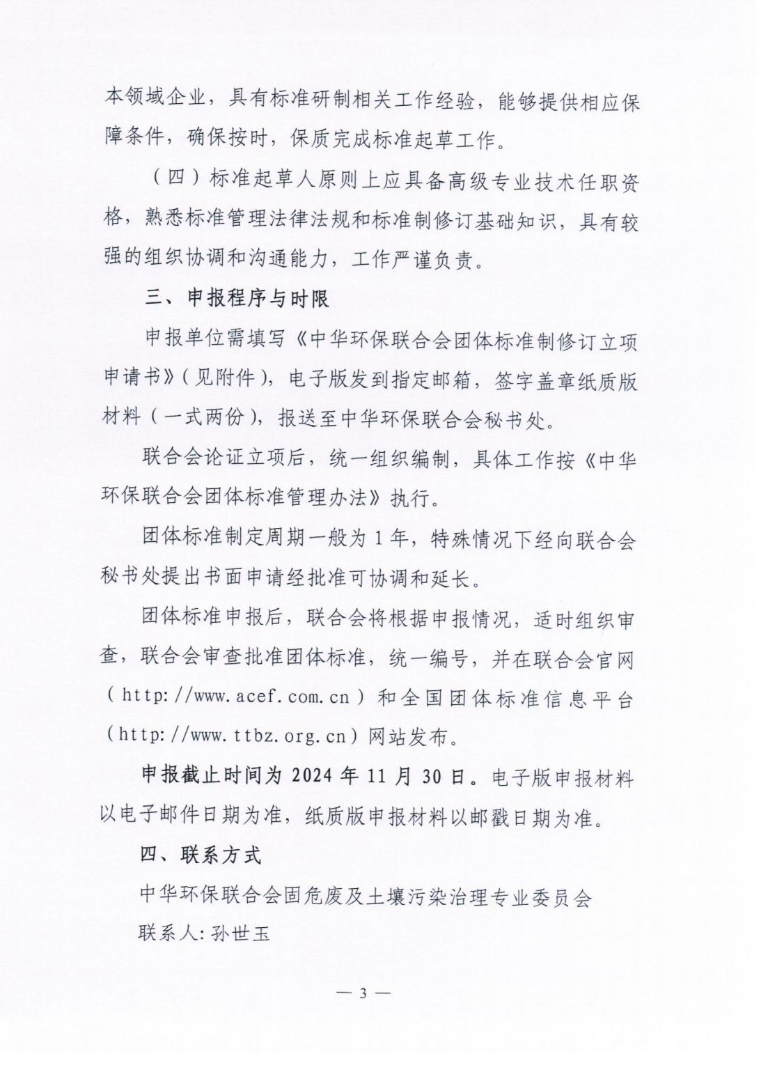 关于开展征集“2024年度土壤(地下水)治理修复团体标准”立项工作通知