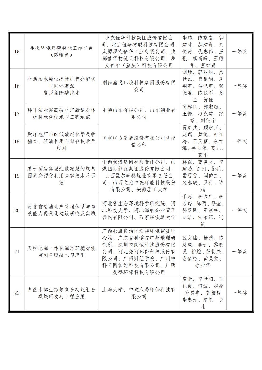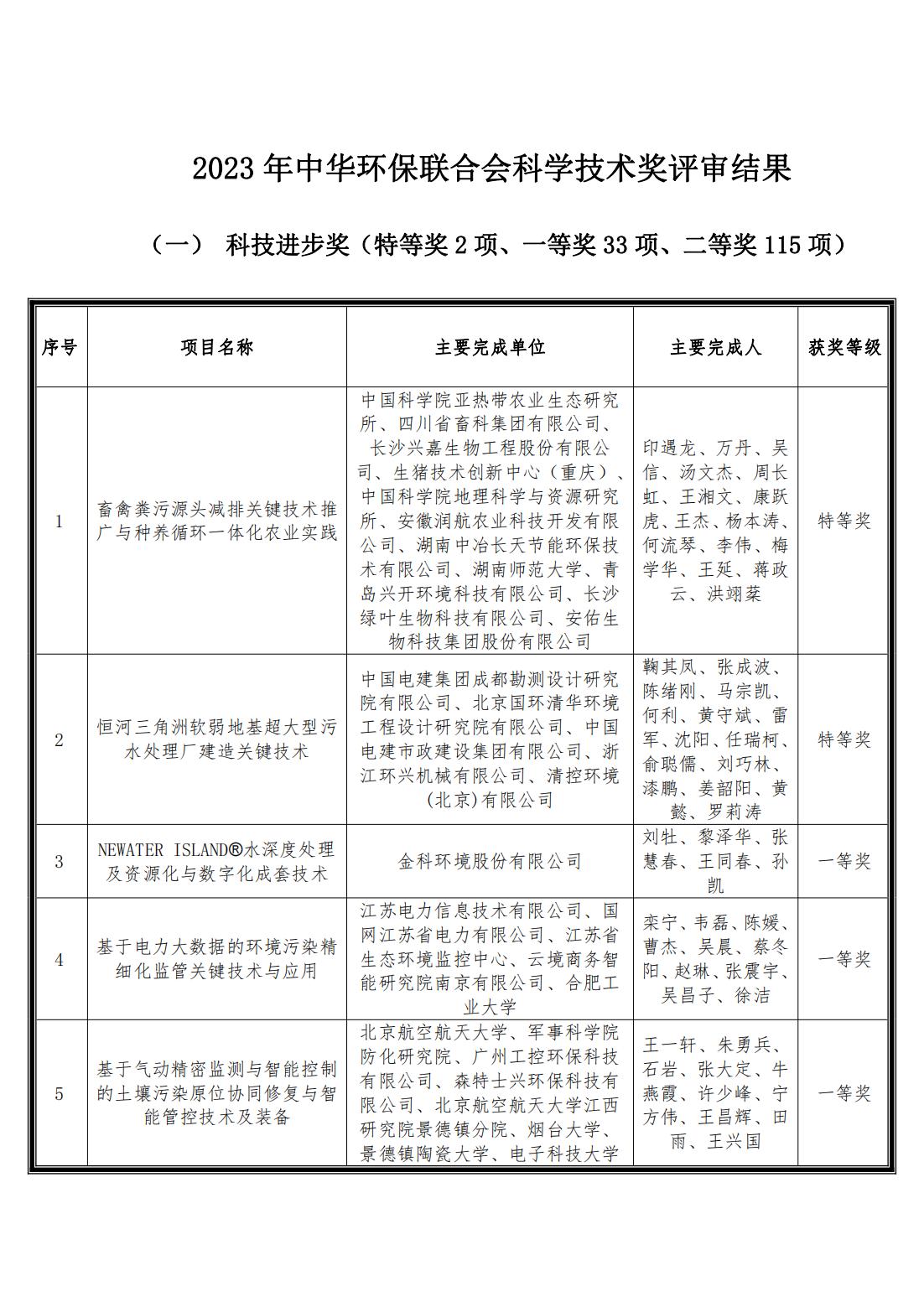 中华环保联合会关于公示2023年度科学技术奖评审结果的公告
