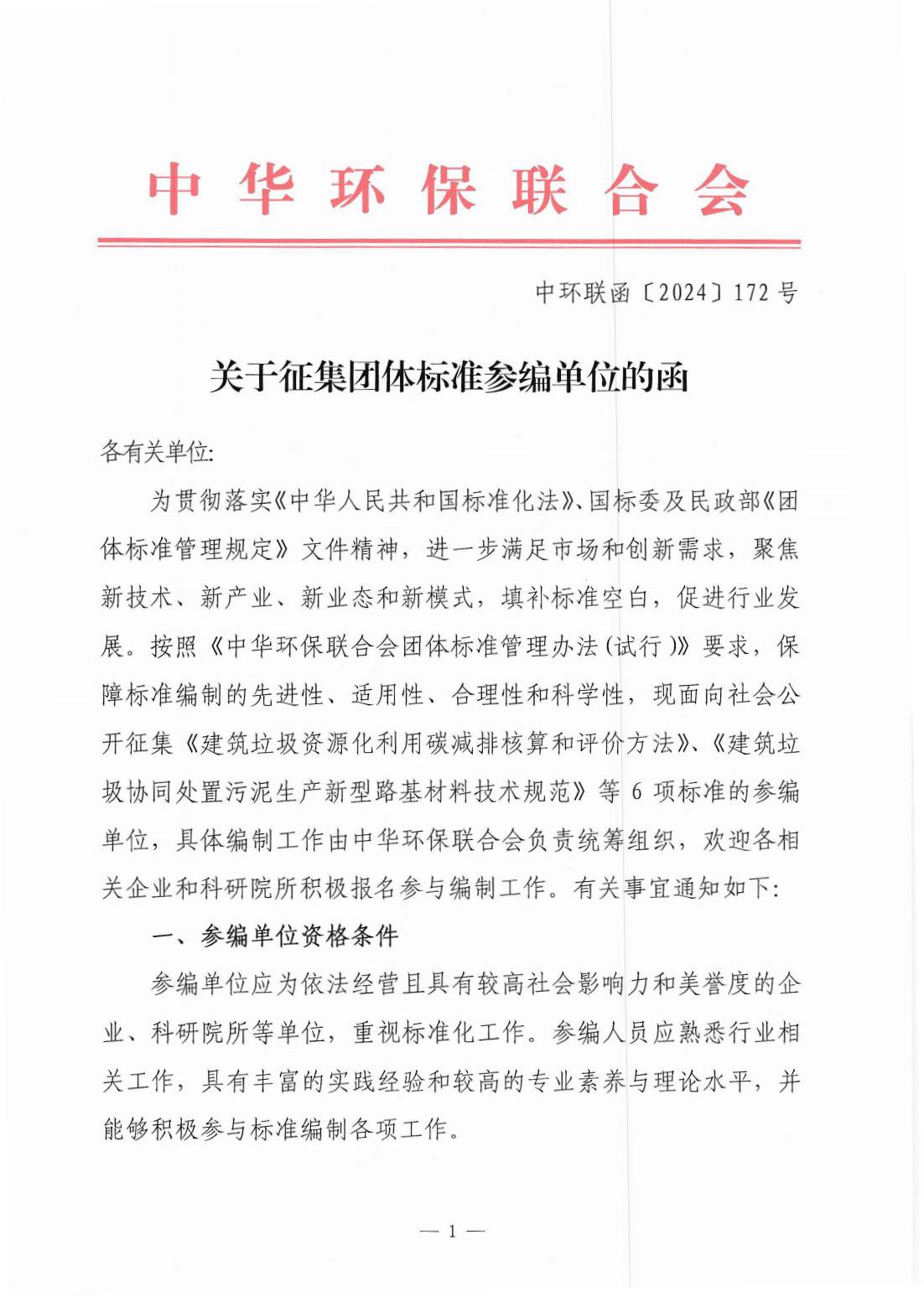 关于征集团体标准参编单位的函
