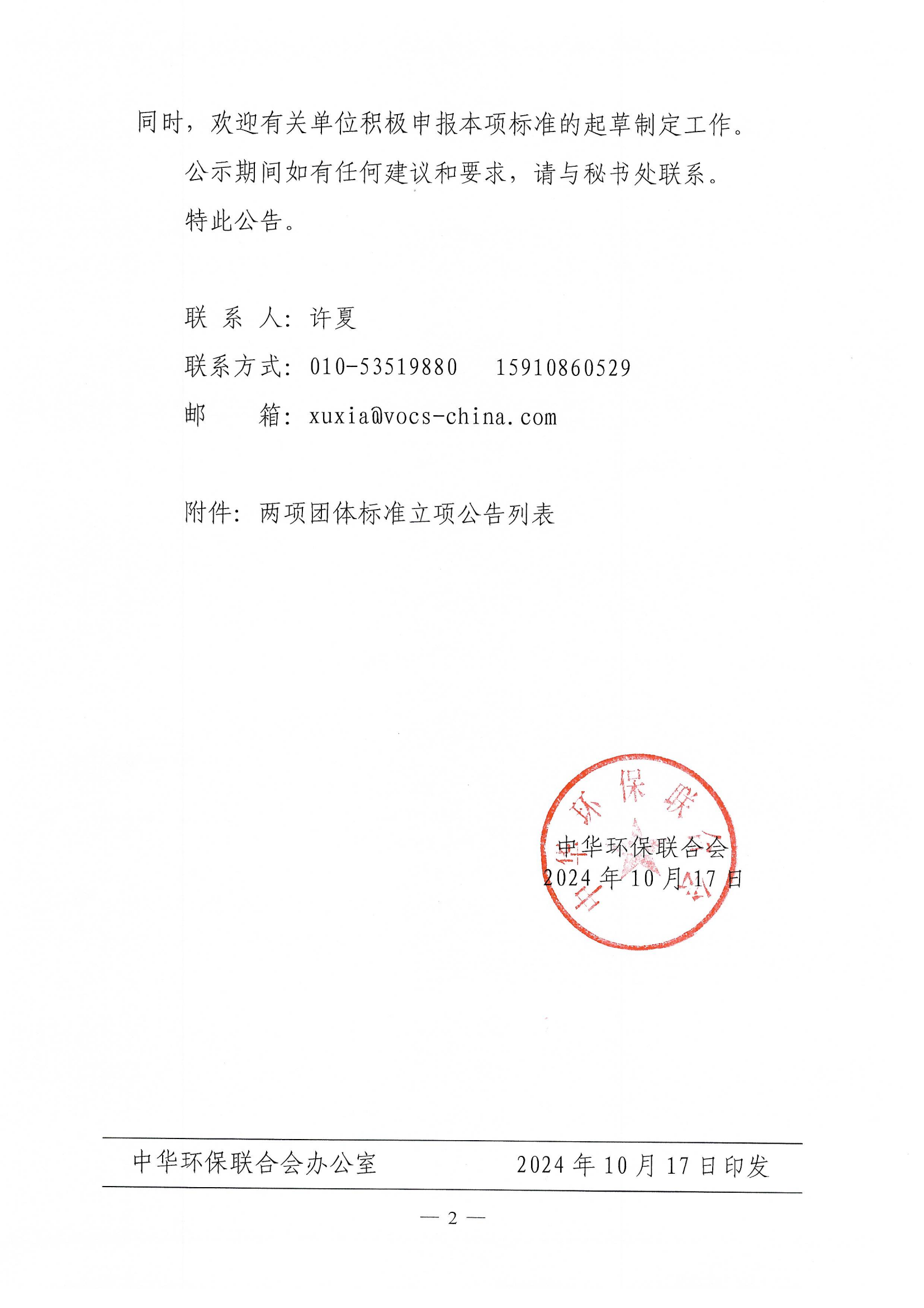 关于开展 2024年度中华环保联合会