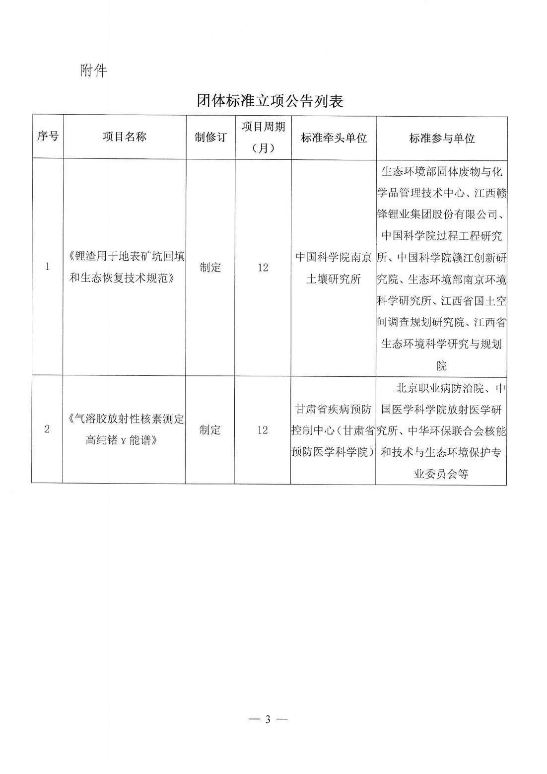 关于《锂渣用于地表矿坑回填和生态恢复技术规范》等两项团体标准立项的公告