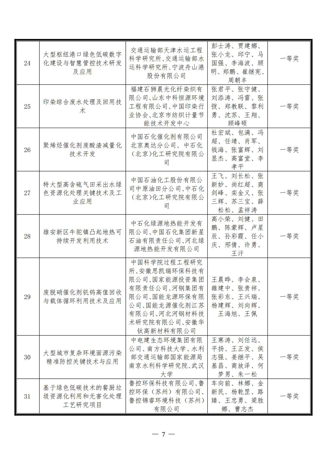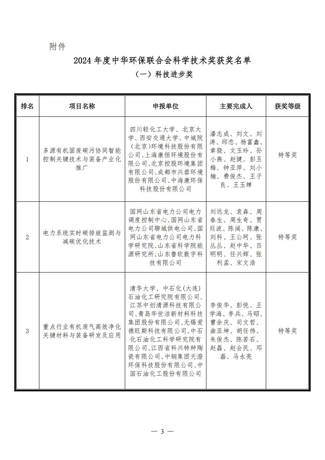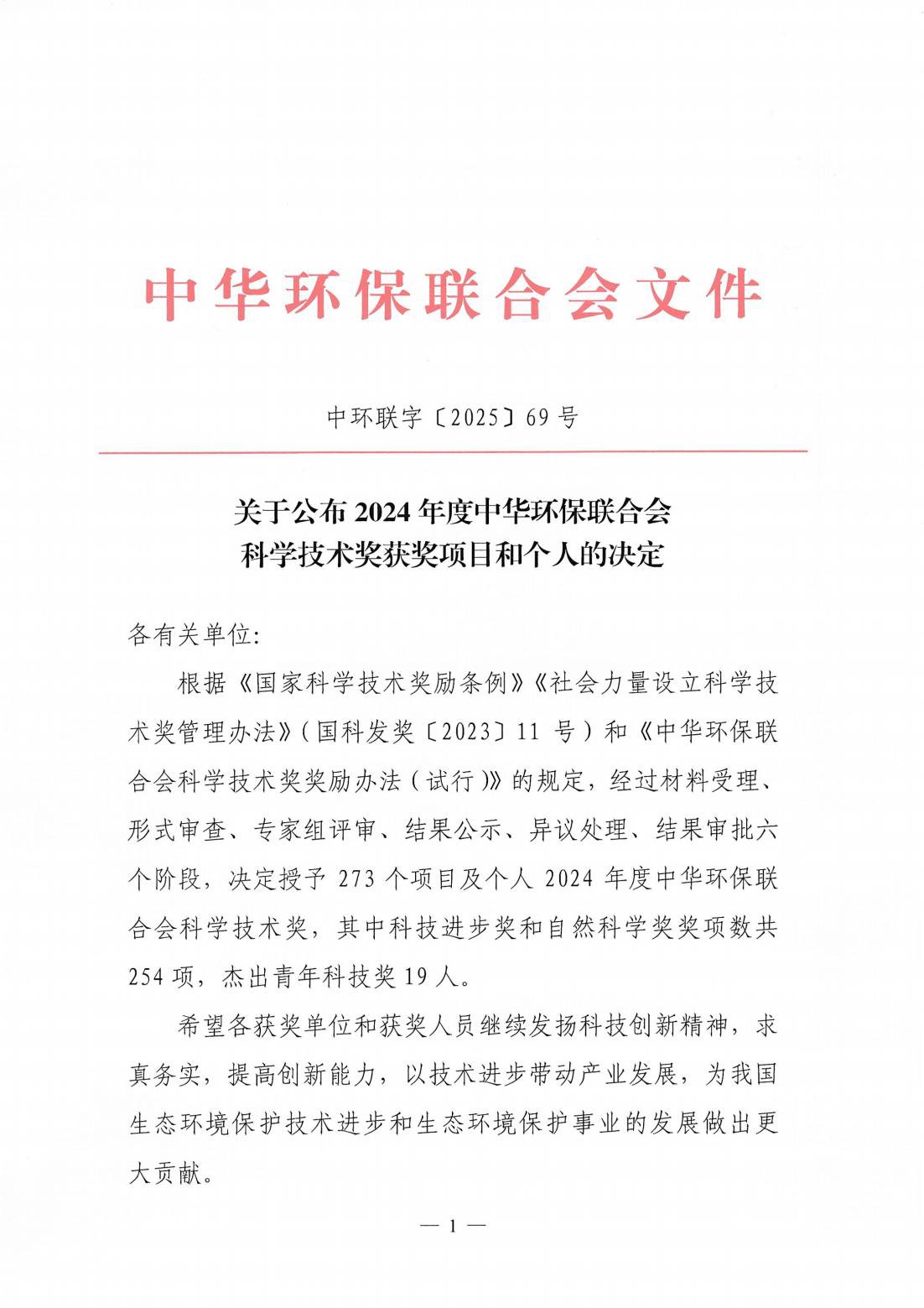 关于公布2024年度中华环保联合会科学技术奖获奖项目和个人的决定