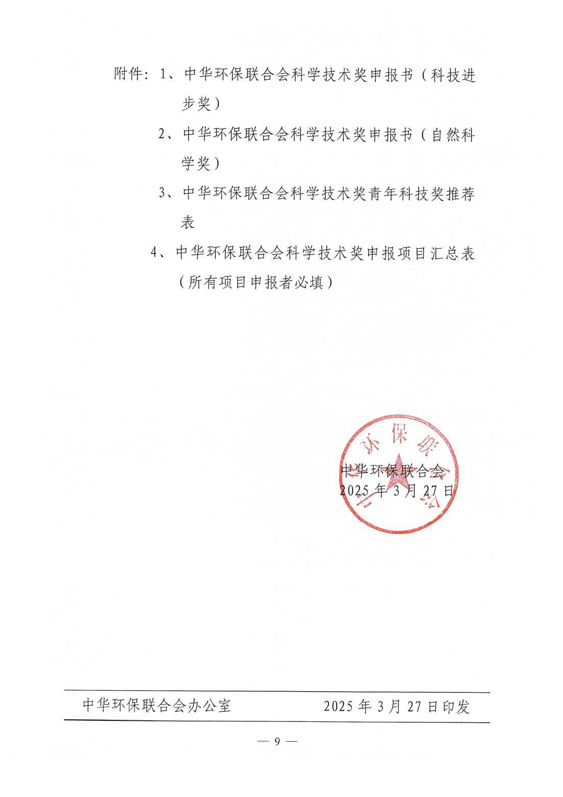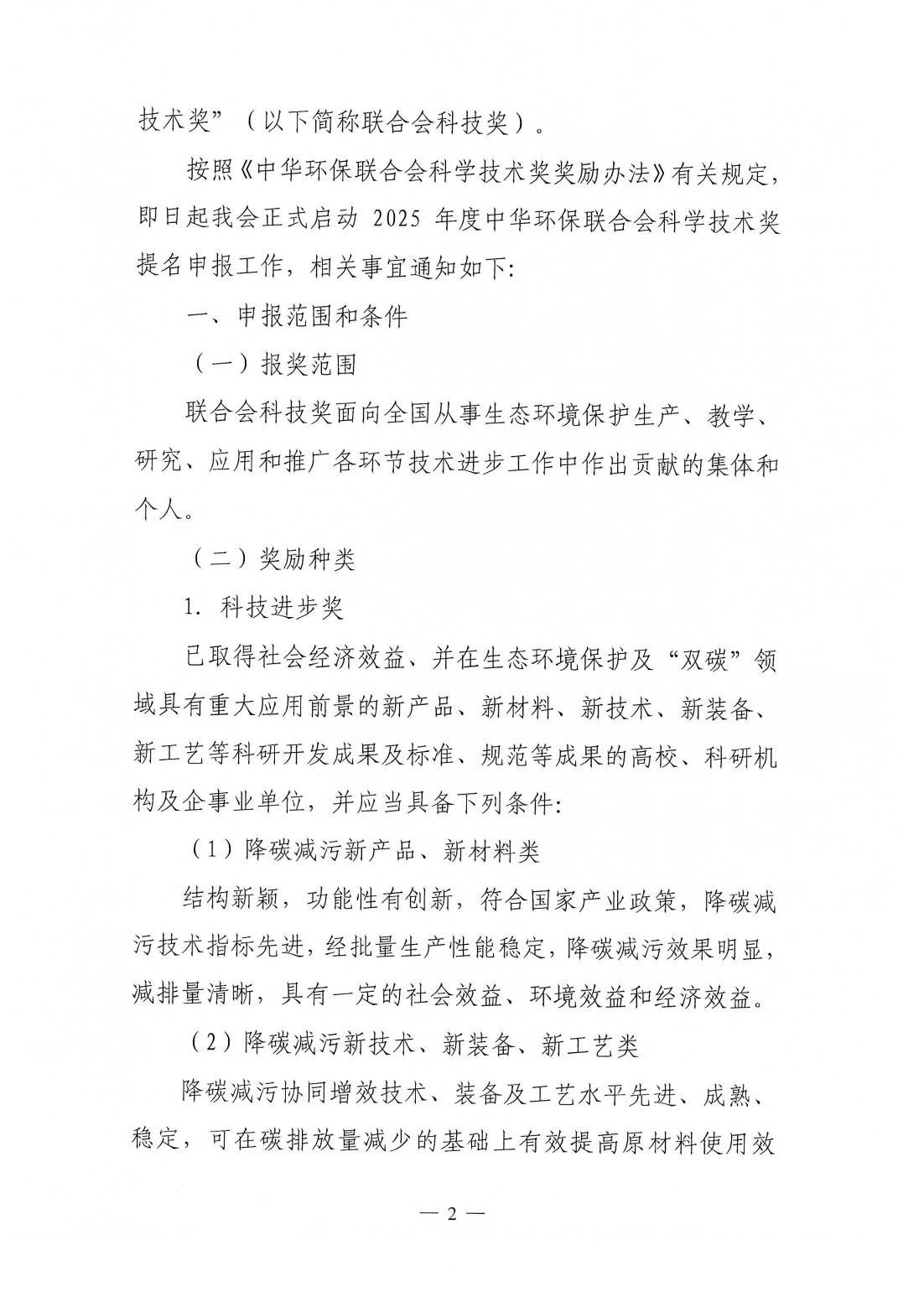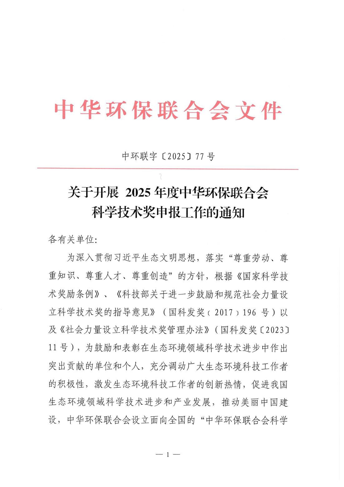 关于开展 2025年度中华环保联合会科学技术奖申报工作的通知