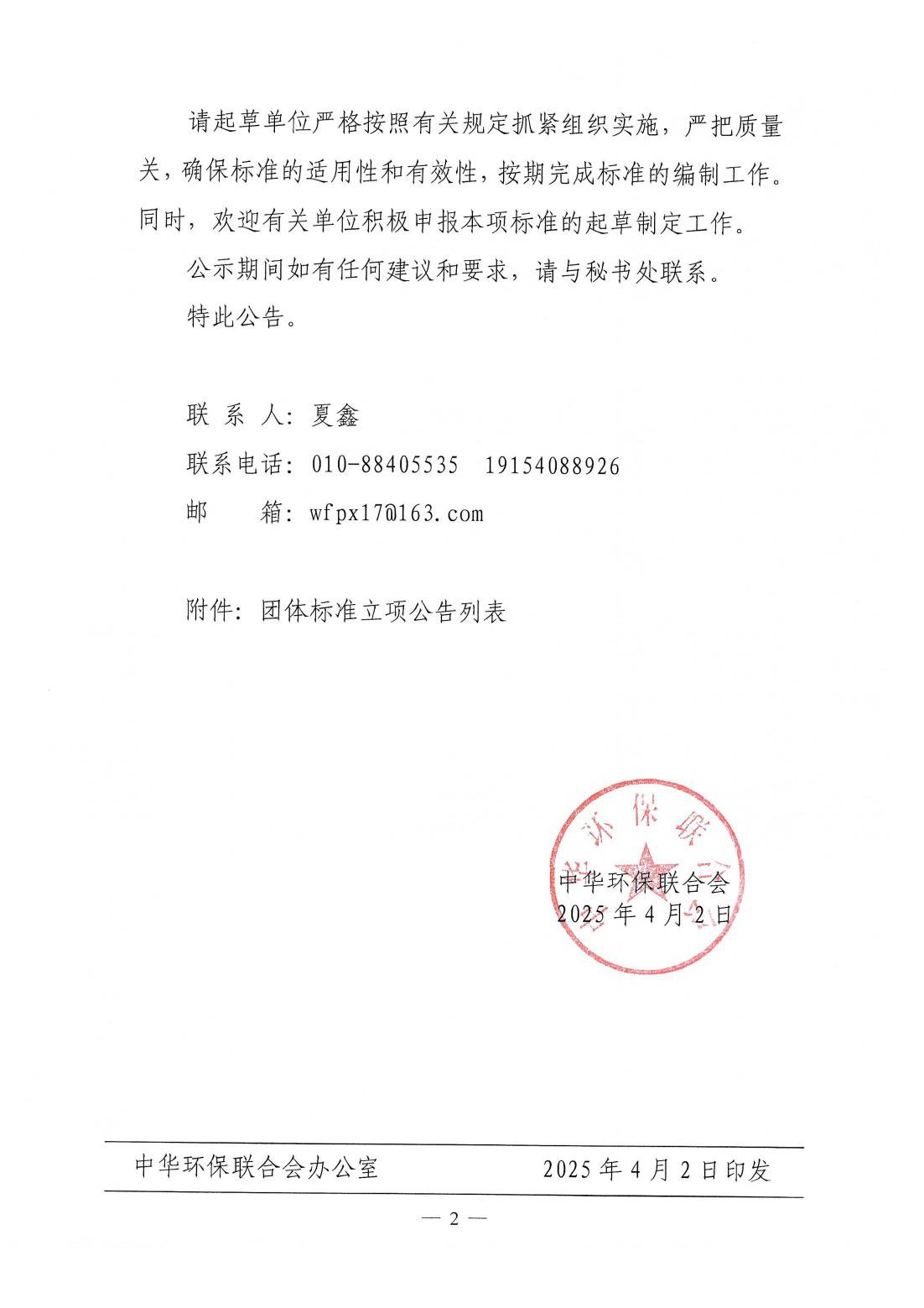 关于开展 2025年度中华环保联合会