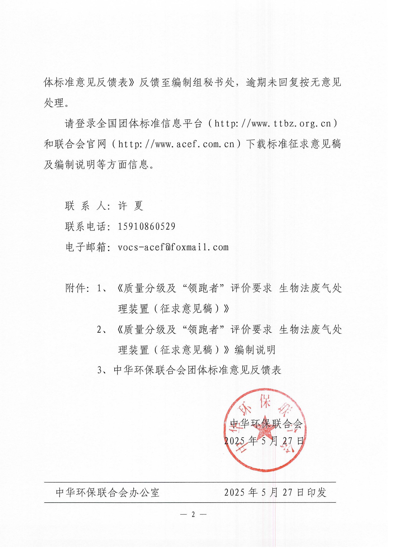 关于《质量分级及“领跑者”评价要求 生物法废气处理装置》团体标准征求意见的函