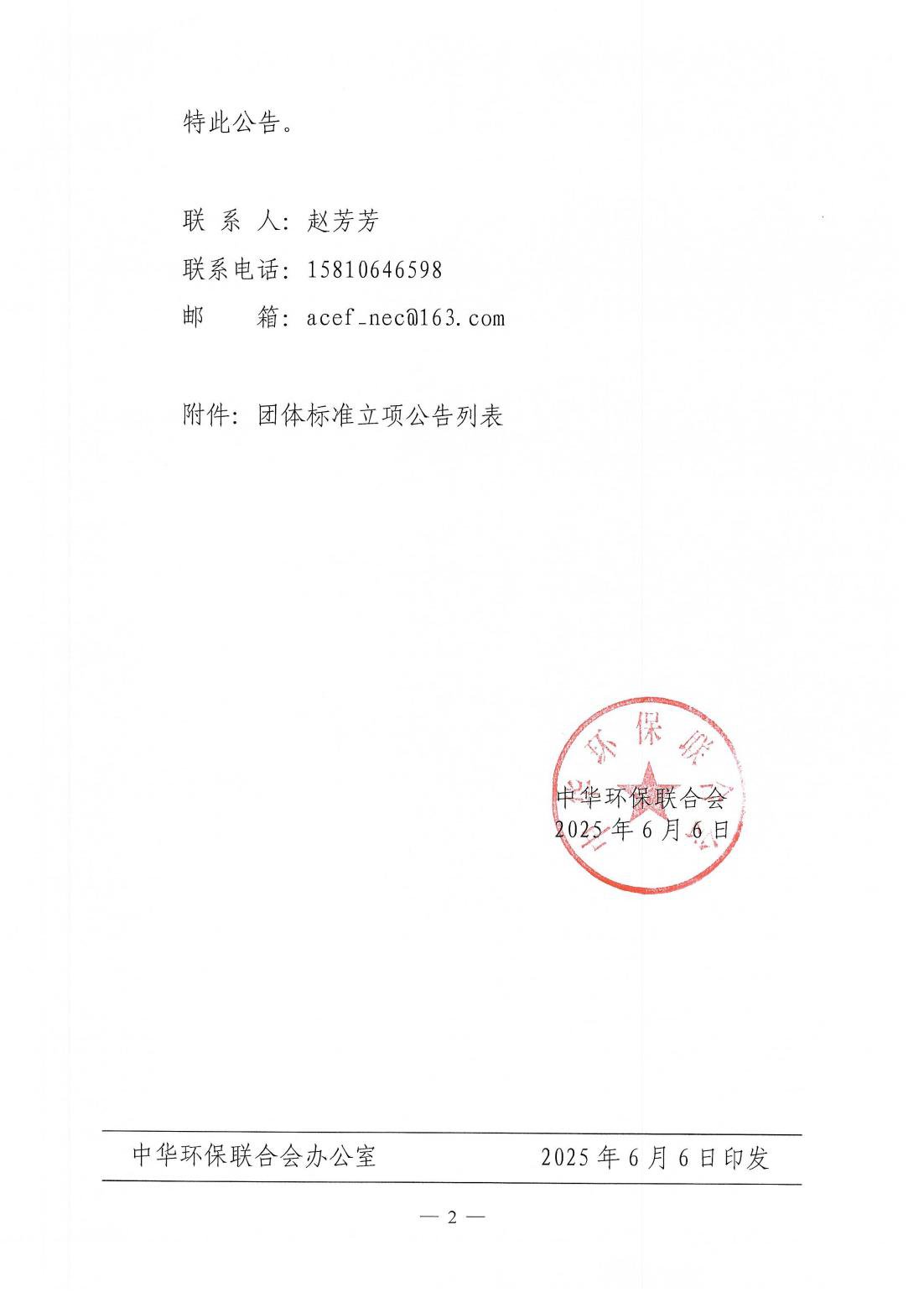 关于开展 2025年度中华环保联合会