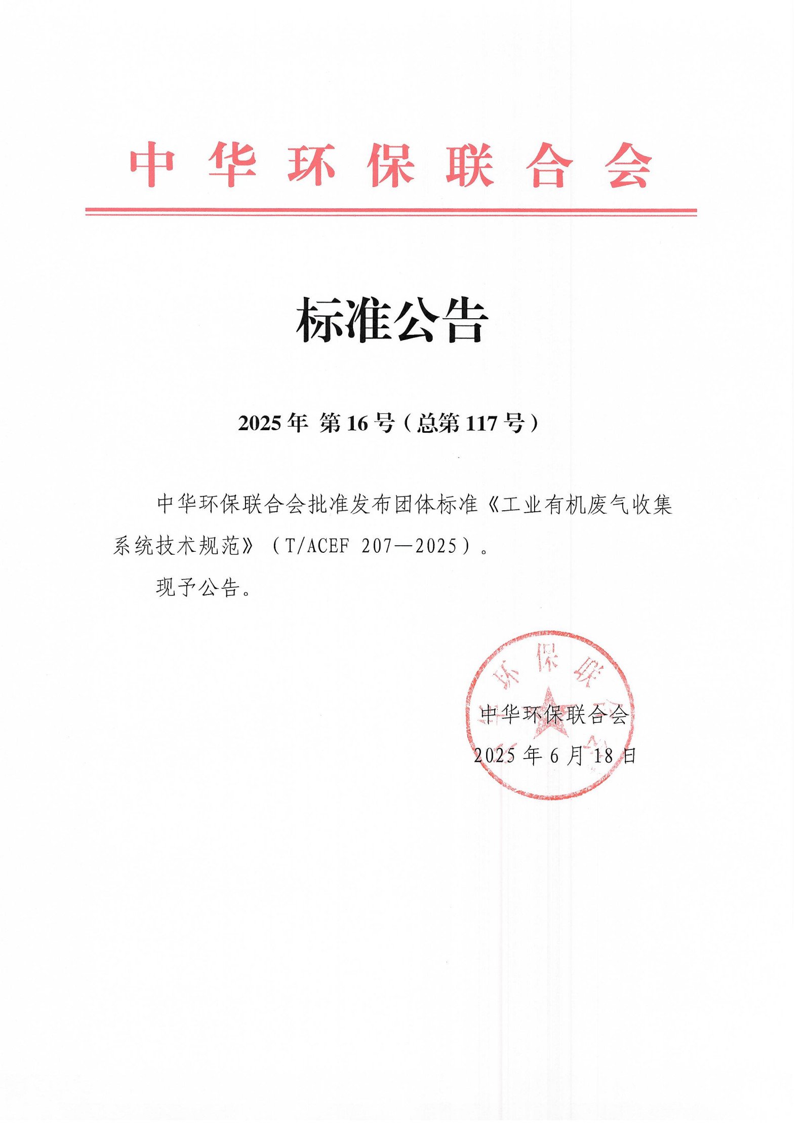 中华环保联合会批准发布《挥发性