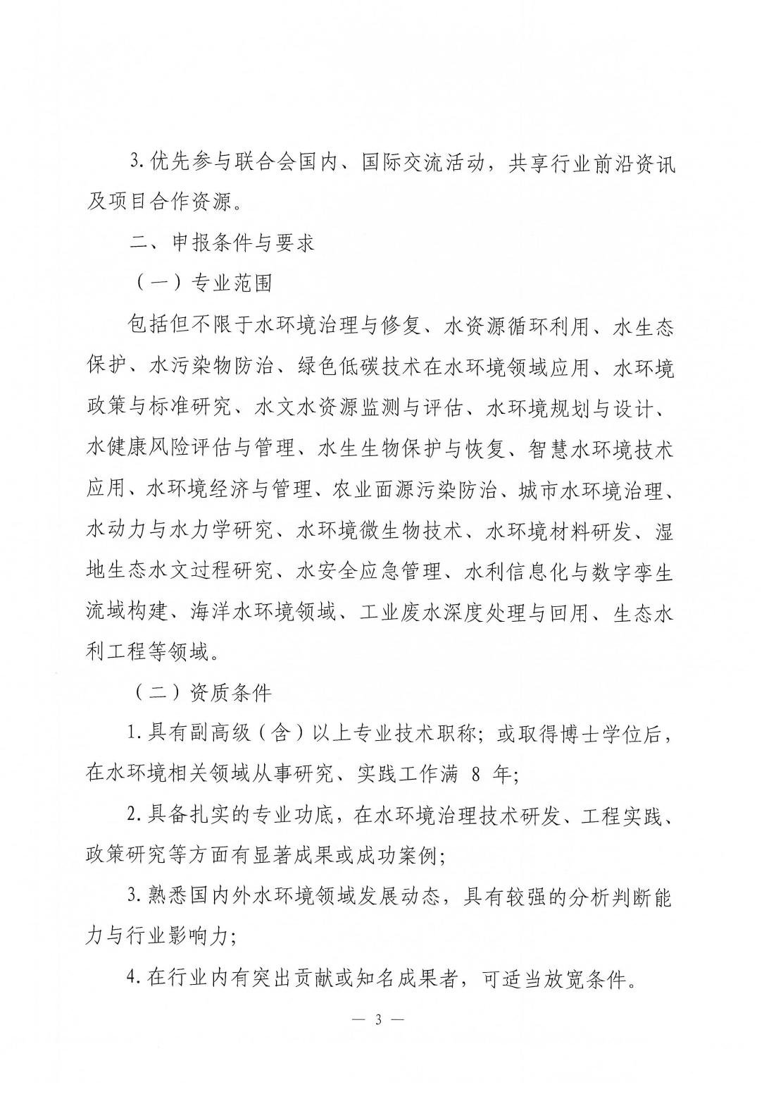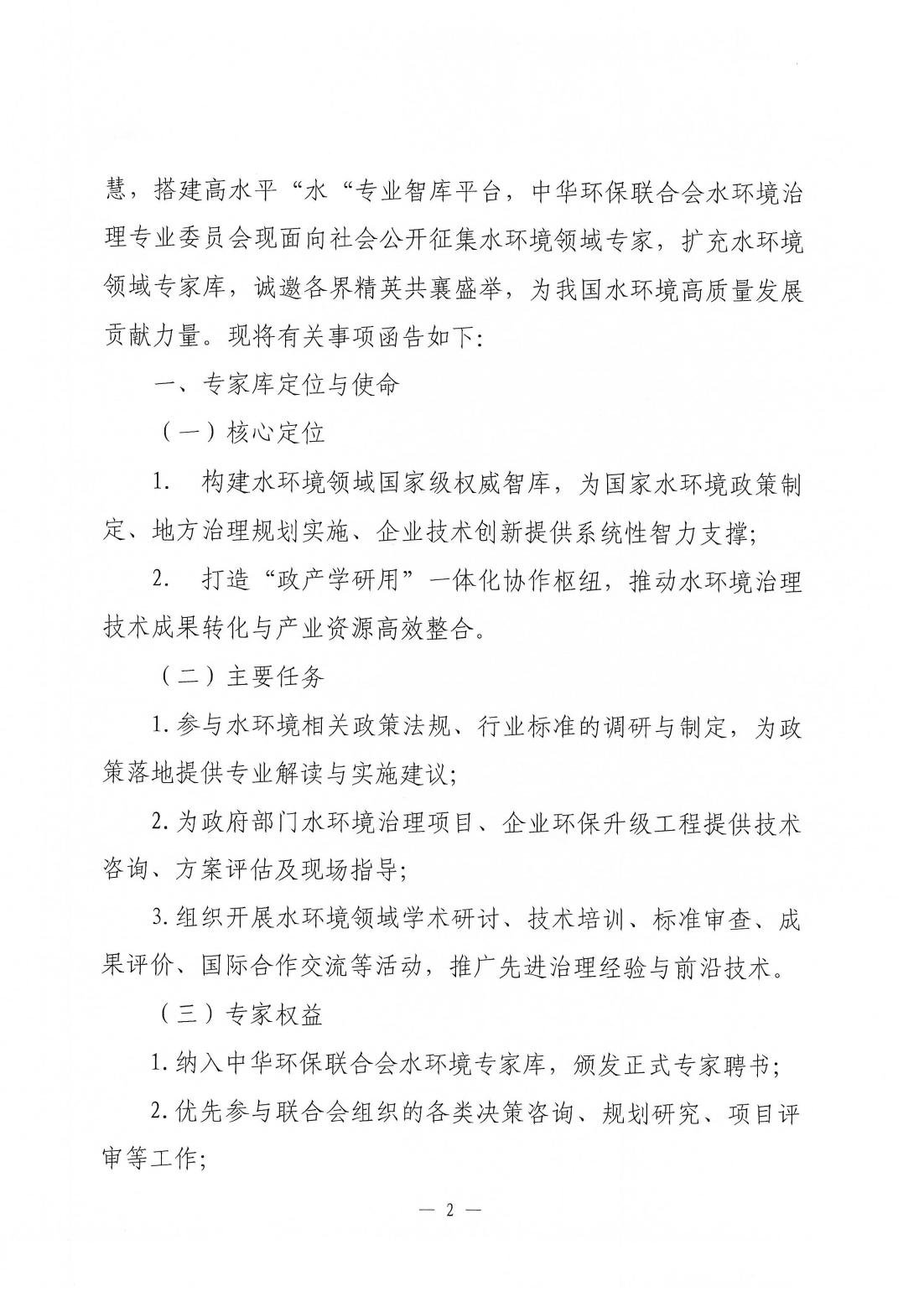 关于征集中华环保联合会专家委员会水环境专家库入库专家的函