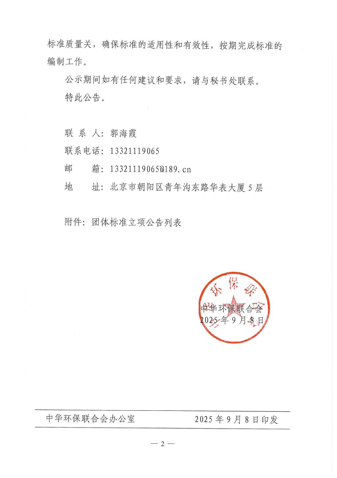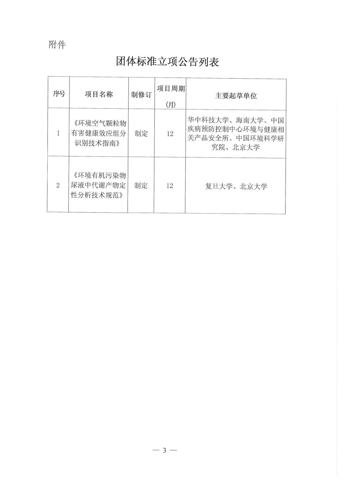 关于《环境空气颗粒物有害健康效应组分识别技术指南》等两项团体标准立项的公告