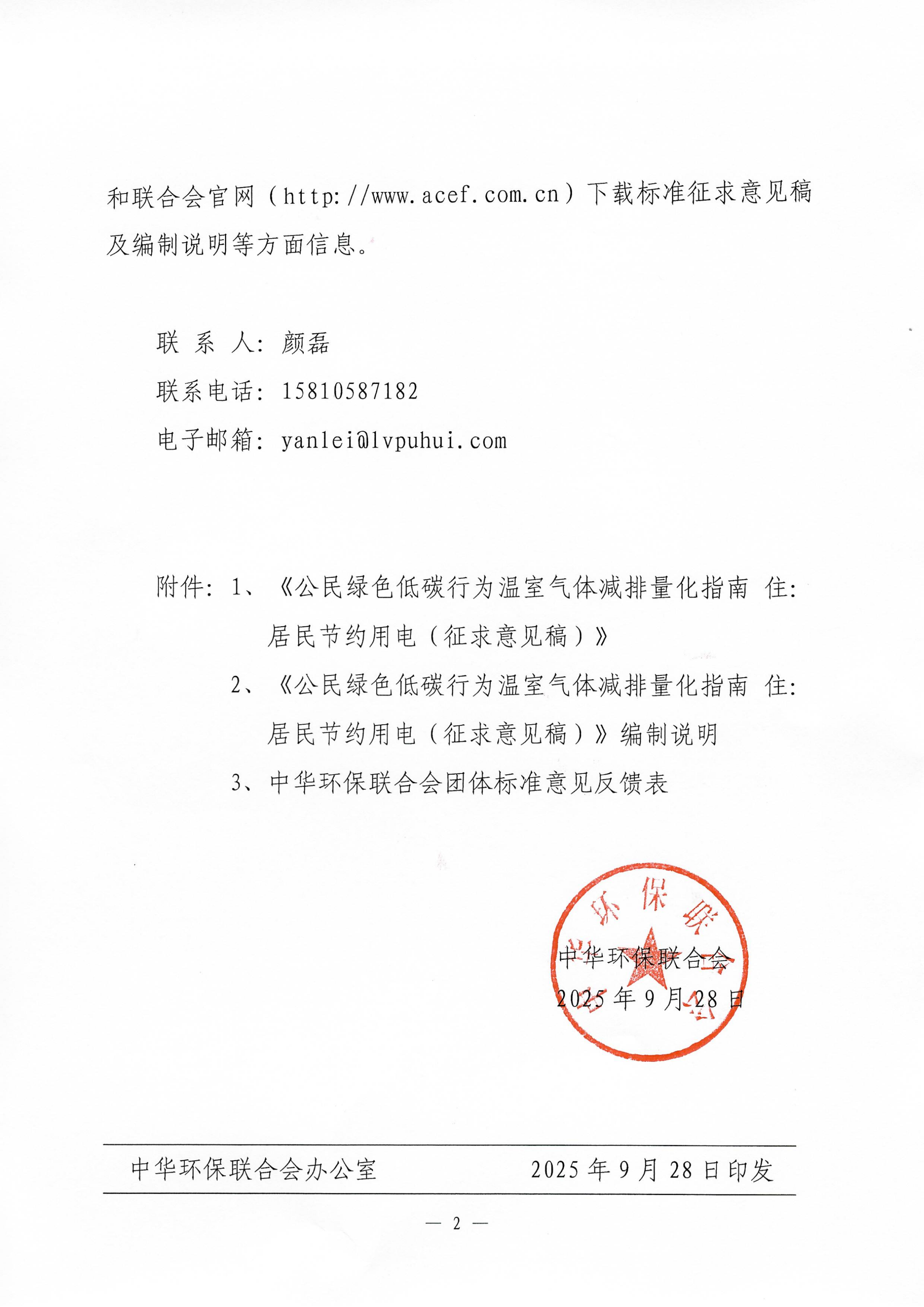关于《公民绿色低碳行为温室气体减排量化指南 住:居民节约用电》团体标准征求意见的函