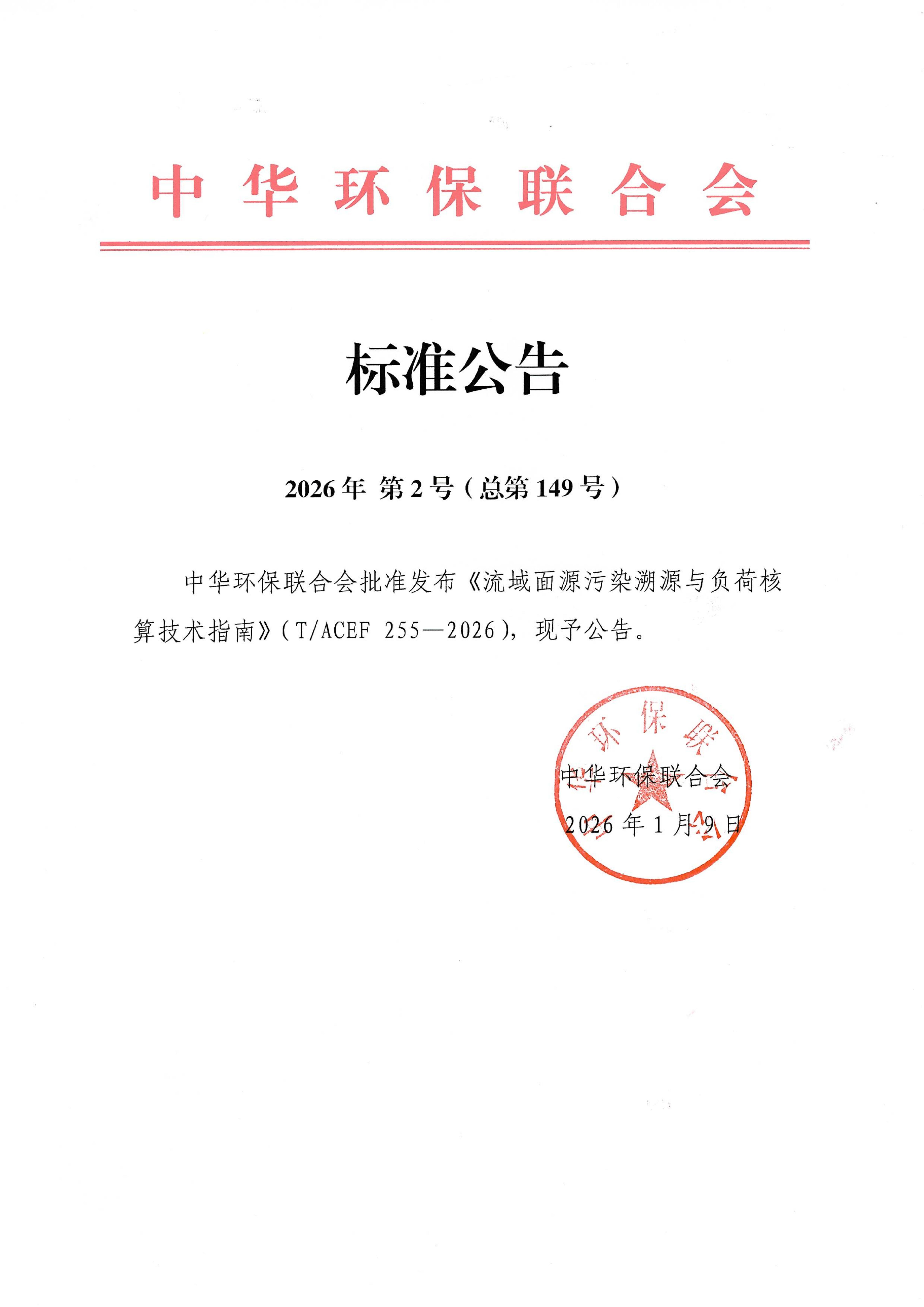 中华环保联合会批准发布《流域面源污染溯源与负荷核算技术指南》团体标准的公告