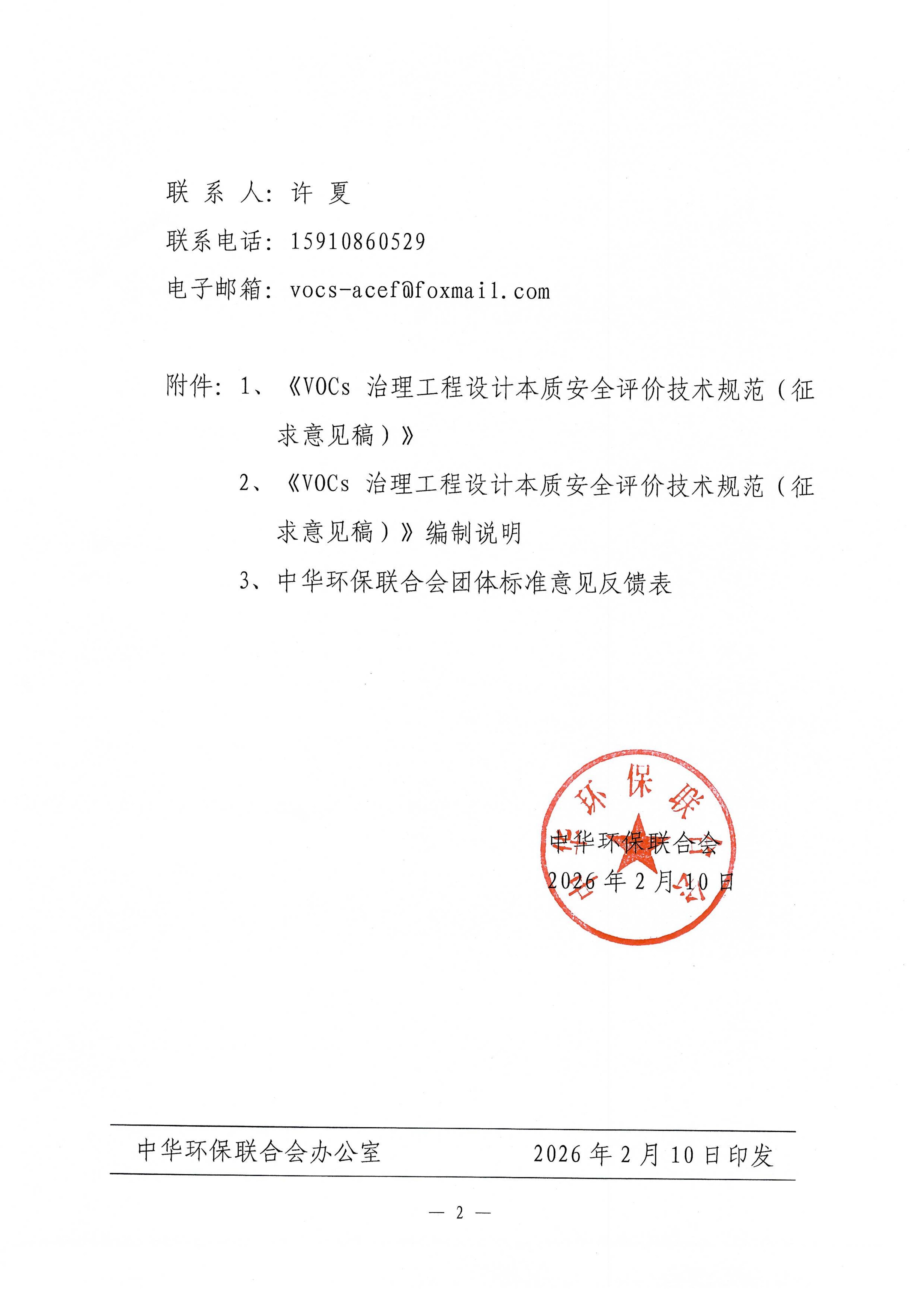 关于《VOCs治理工程设计本质安全评价技术规范》团体标准征求意见的函