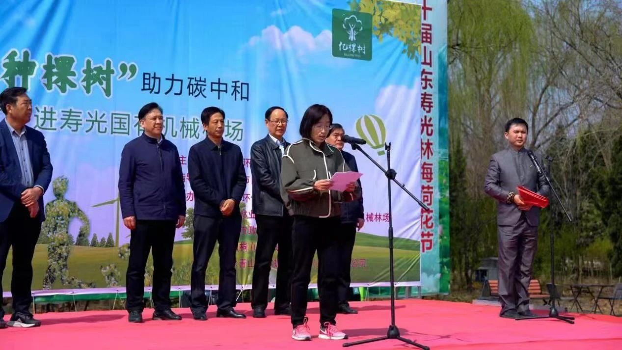 潍坊市自然资源和规划局负责人王垂军在致辞中说:潍坊市位于山东半岛中部,南靠沂蒙山、面朝渤海湾,陆域面积1.61万平方公里,海域面积1400平方公里,常住人口940万。是世界风筝都、中国画都、中国食品谷、中国动力城和蓝宝石城,被命名为全国文明城市、国家森林城市、国家环保模范城市、国家园林城市等等。我为气候种棵树公益活动,将促进公众广泛关注和参与植树造林,增强全民绿化意识和减排观念,为营建绿色地球、助力碳达峰和碳中和,承担一份责任,贡献一份力量。