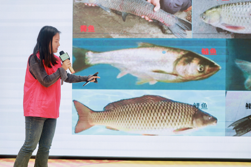 “什么是鱼类?”“为什么要保护鱼类?”“有些鱼为什么会灭绝?”在现场,公益科普讲师以互动提问的方式开展科普。孩子们纷纷举手回答,积极互动。在一问一答中,长江水生生物物种保护知识,在孩子们心中生根发芽。