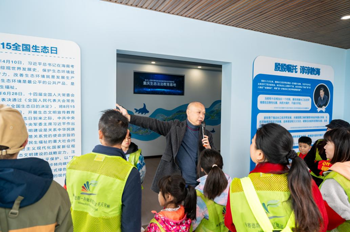 “欢迎大家来到长江上游珍稀特有鱼类国家级自然保护区,一起守护长江生态。”重庆市林业局鱼保处处长王维带领志愿者参观基地,生动地介绍保护区“家珍”,号召小朋友们成为守护长江的小卫士。