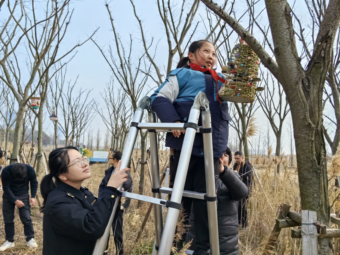 “我要在小树上,给小鸟安个家,让更多的小鸟们在海门安家落户。”来自第一实验小学的学生将亲手制作的鸟巢安放在刚刚种下的树丫上。从刨坑种树到挂鸟巢尽责,小朋友们将自己对大自然的爱意不仅仅播撒在春天,更延续到一年四季。
