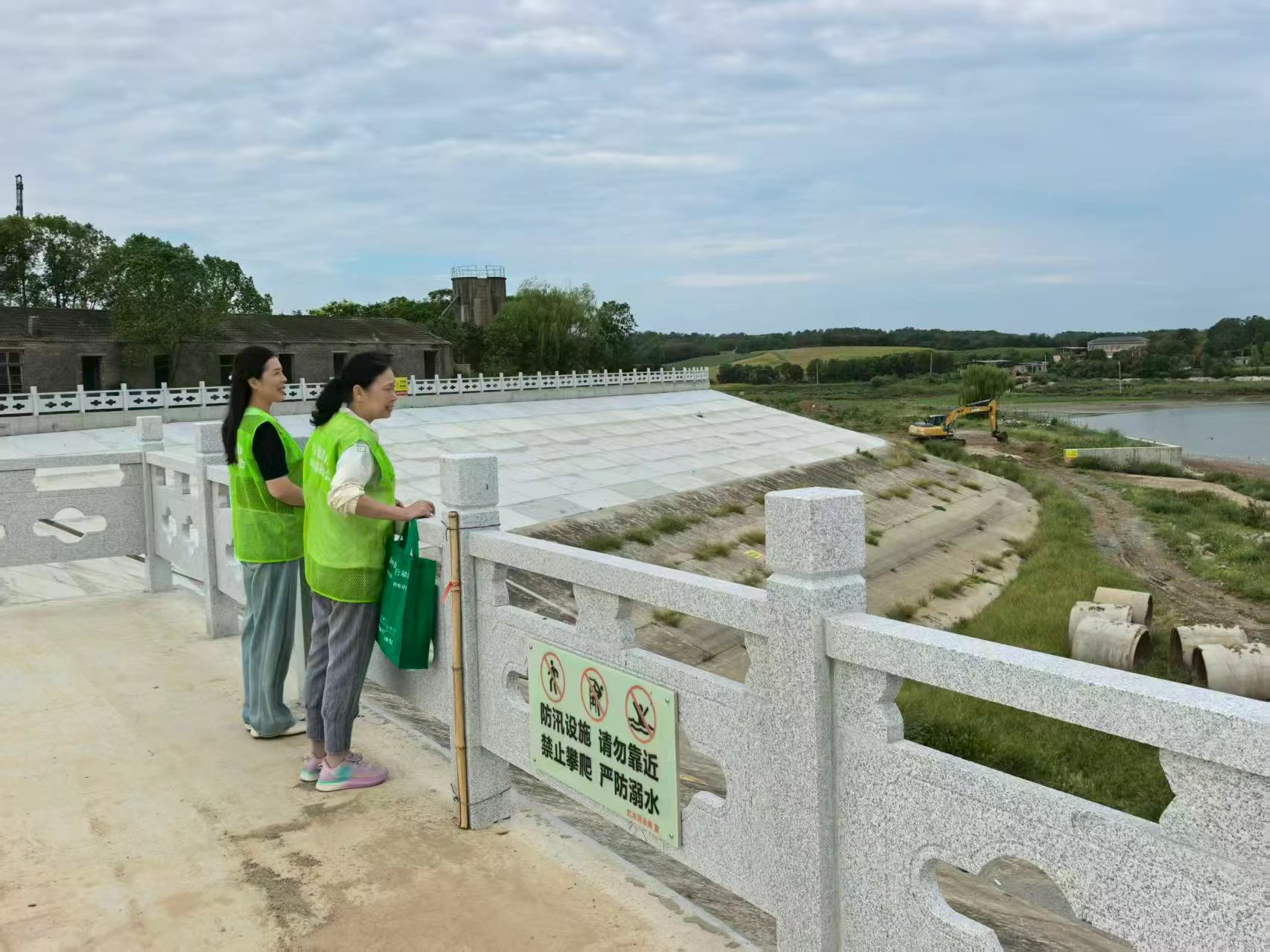 随后,志愿者们又先后抵达红水河水库和西排子河水库。在这两处水库,志愿者们看到堤坝加固工程正在有序推进。