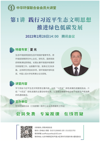 为更好的服务于会员企业,进一步搭建会员企业展示和沟通交流的平台,助力会员企业发展,发挥中华环保联合会作为工信部第一批中小企业志愿服务工作站的作用,2月28日14:00,以线上视频形式(腾讯会议)举办“中华环保联合会会员大讲堂”第一讲。